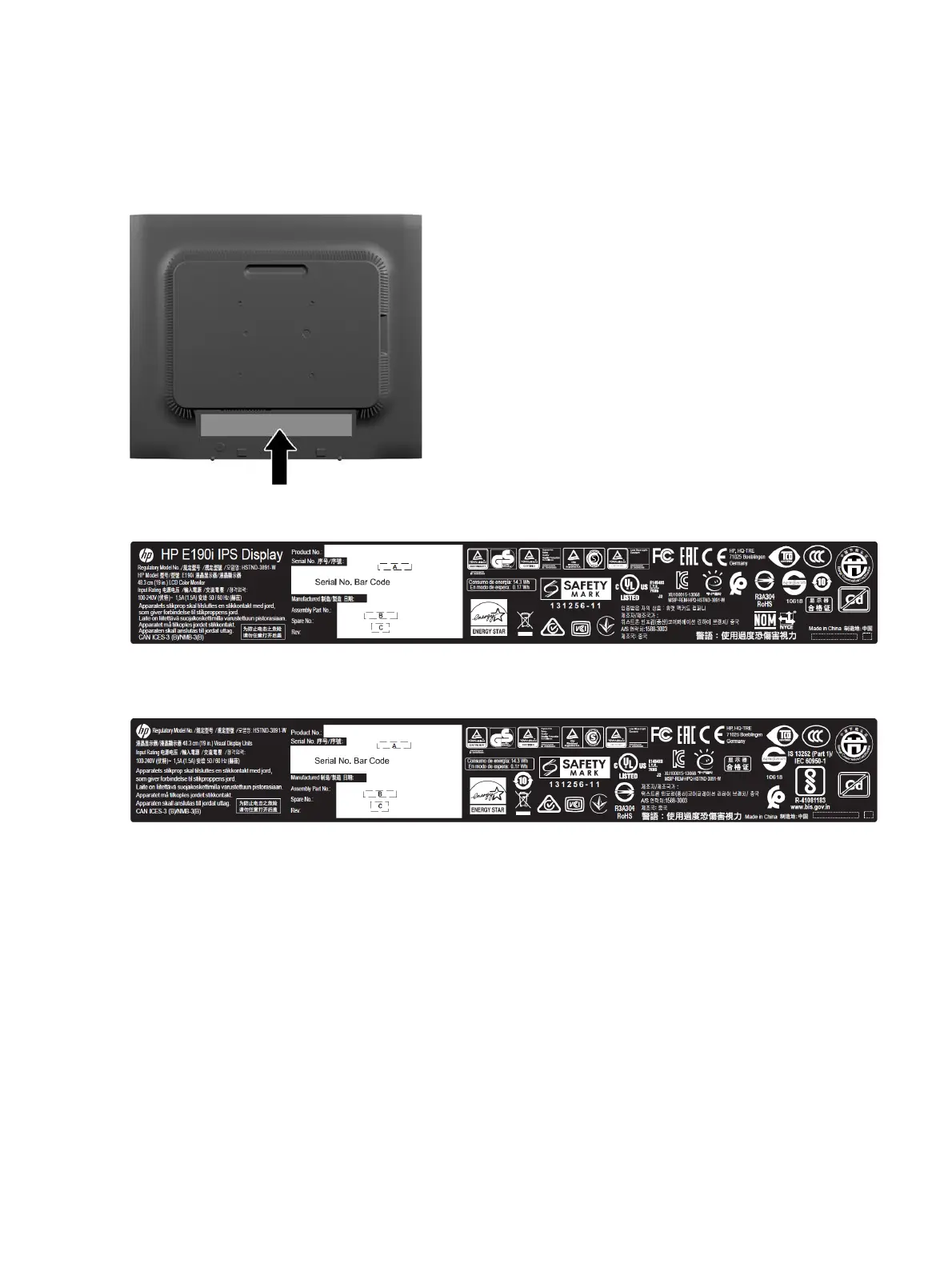 HP E190i - Locating the Serial Number and Product Number