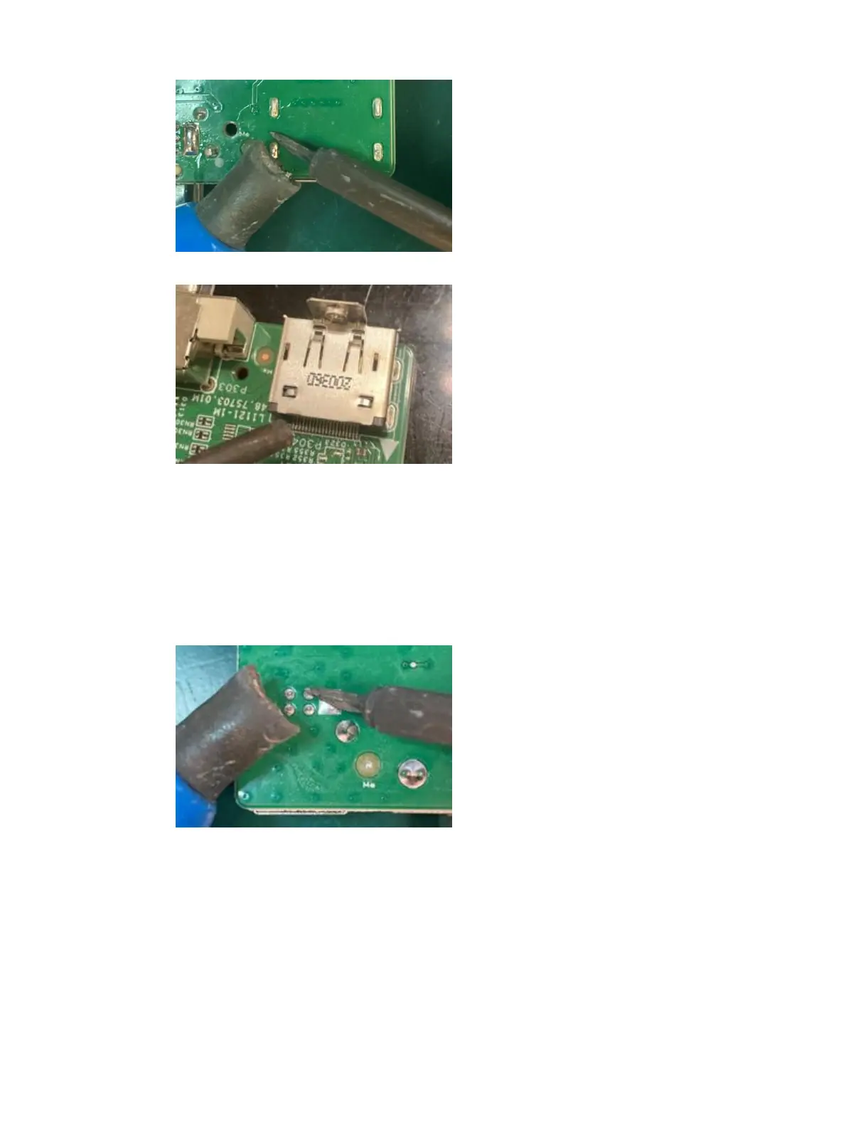 1) Use a hot air gun to melt the solder on the pins. Pin solder with soldering iron and absorber. You can gently