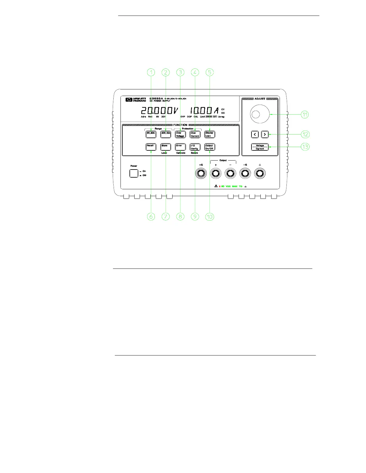 13 Voltage/current adjust selection key