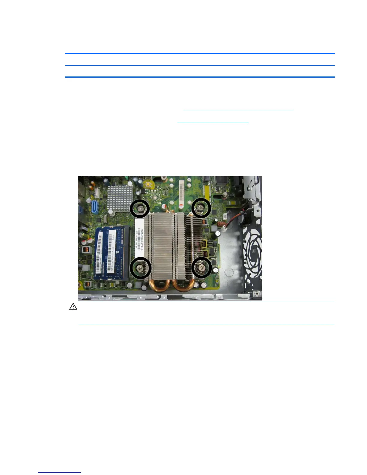 CAUTION: Heat sink retaining screws should be removed in diagonally opposite pairs (as in