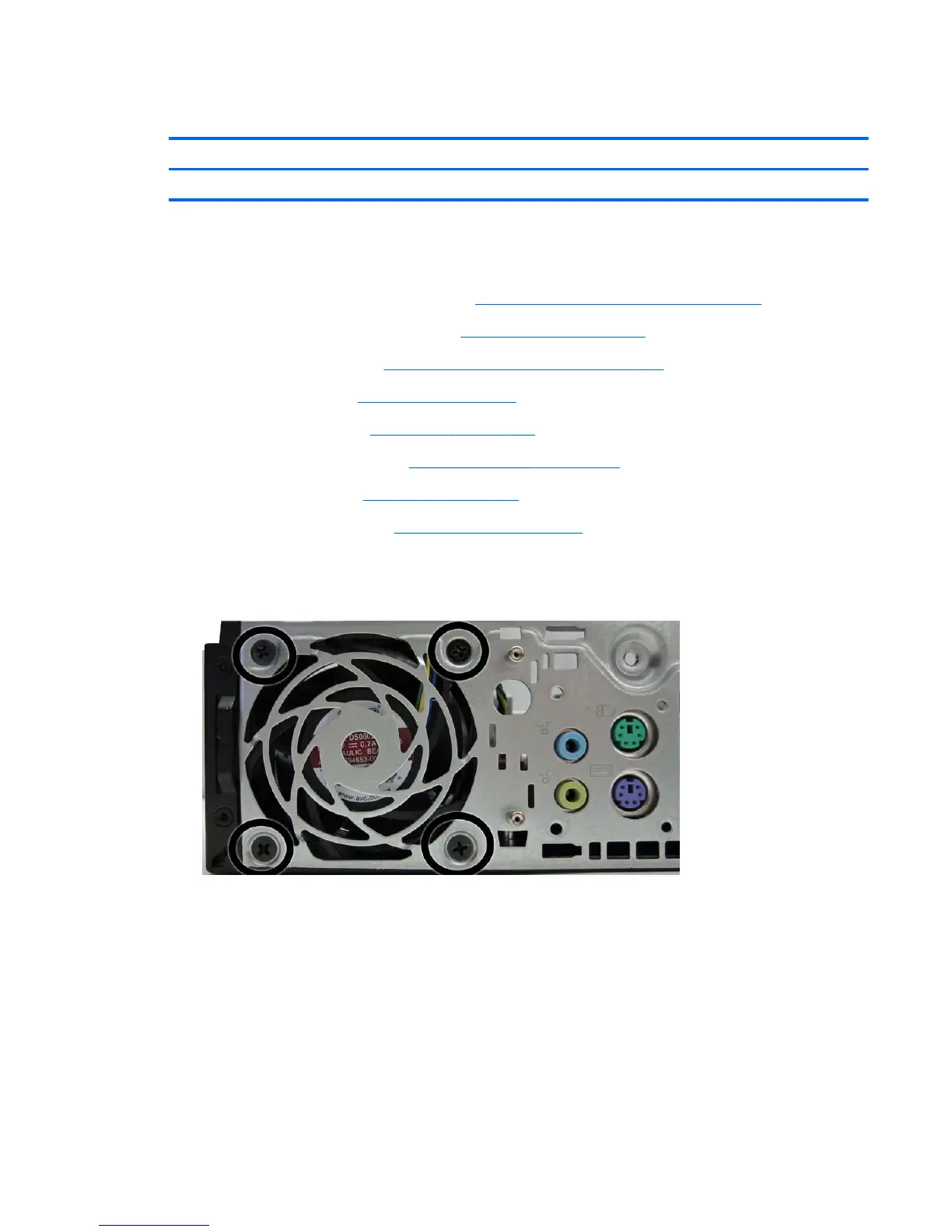 9. From the outside of the chassis, remove the four Phillips screws that secure the fan to the