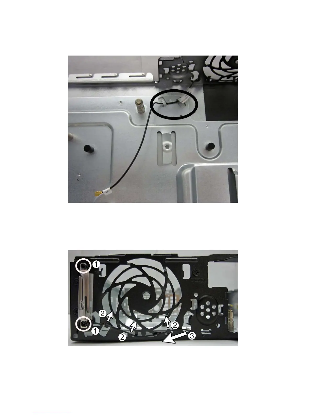 12. Pull the antenna out of the clips on the front of the chassis (2), and then pull the antenna out of