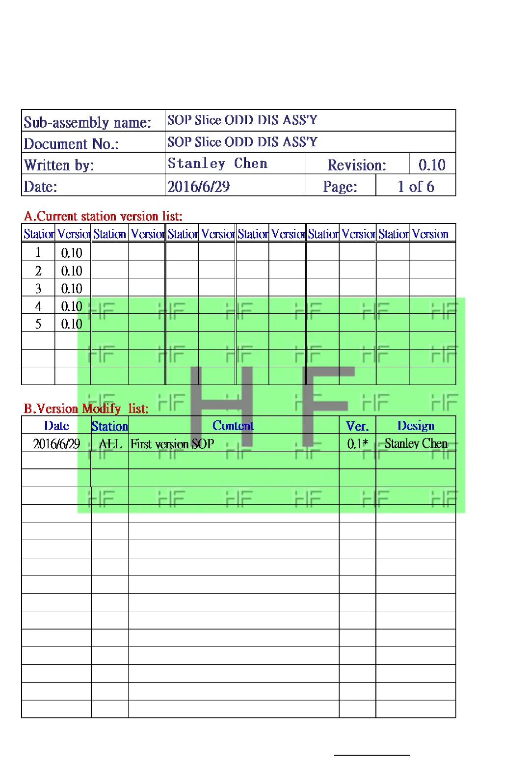 MANUFACTURING PROCESS INSTRUCTIONS