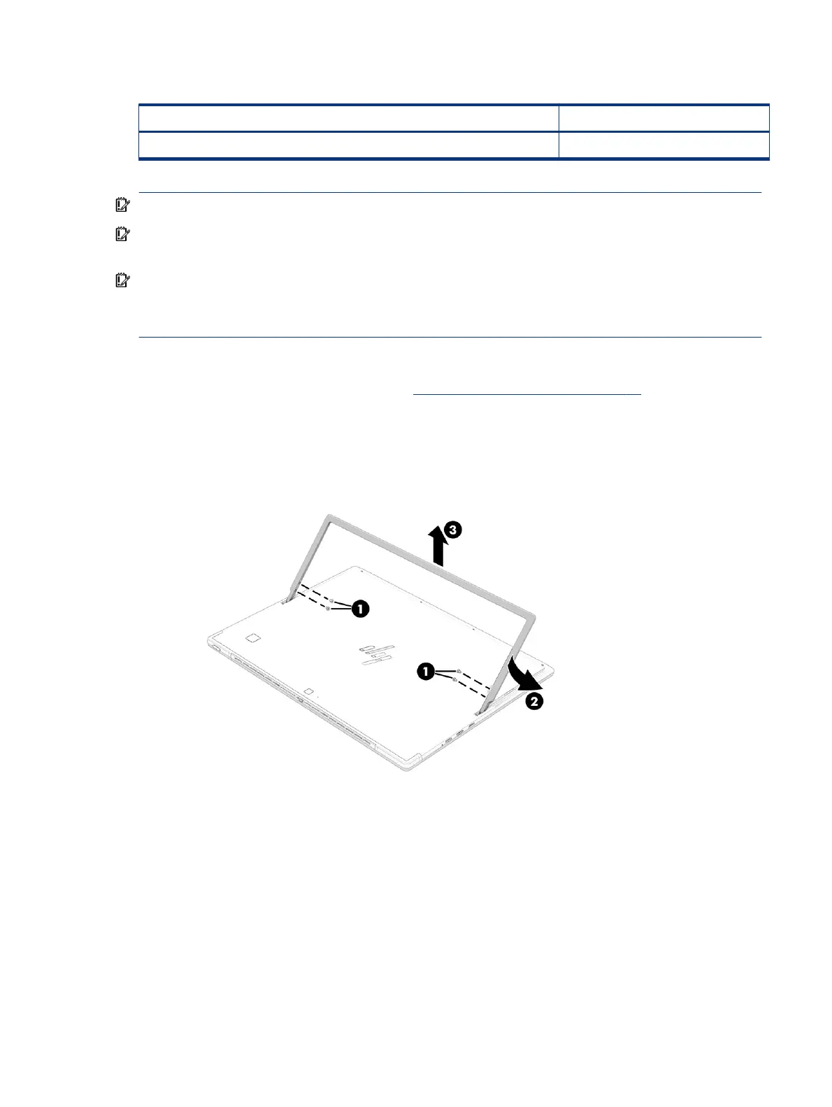 1. Remove the two Torx T5 2.0 × 3.5 screws from each side of the kickstand (2).