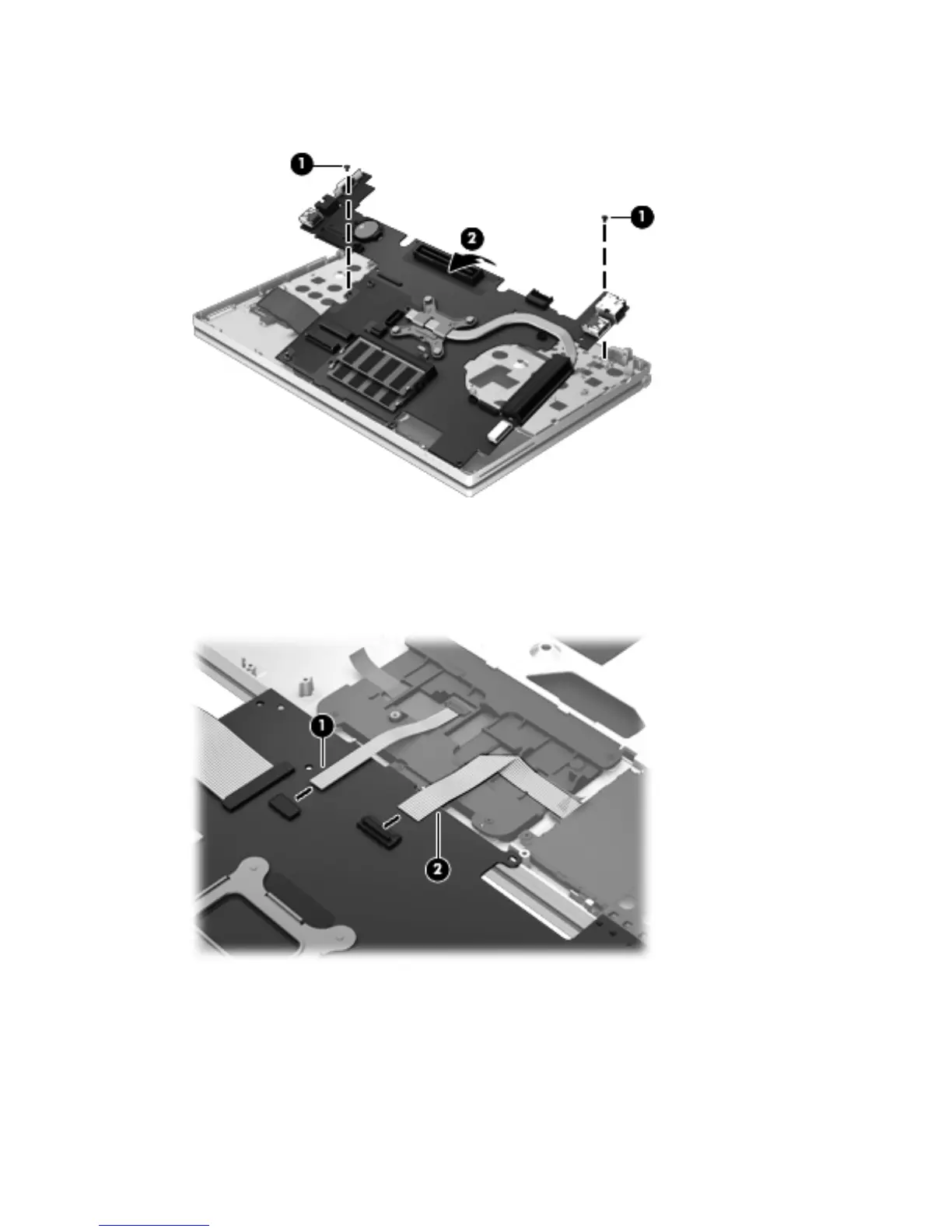 TouchPad cable (1) from the system board.