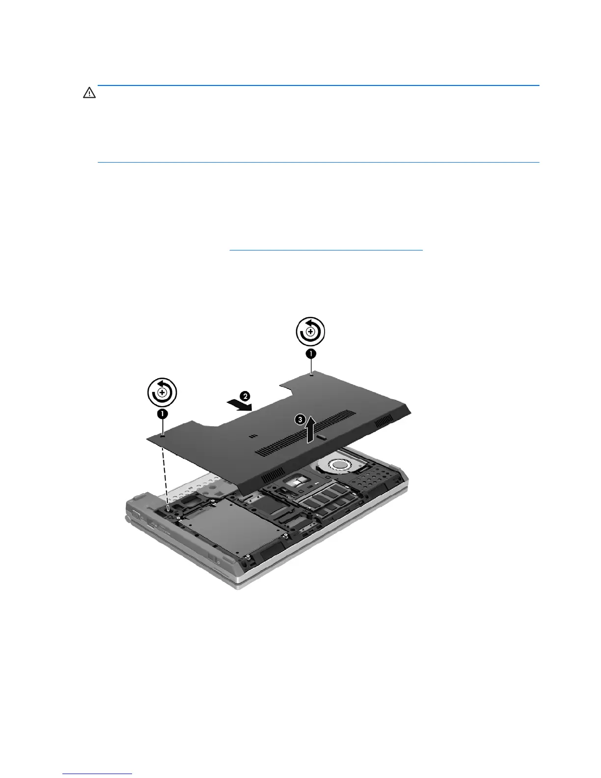 Replace the service door after accessing the memory module slots, hard drive, and other
