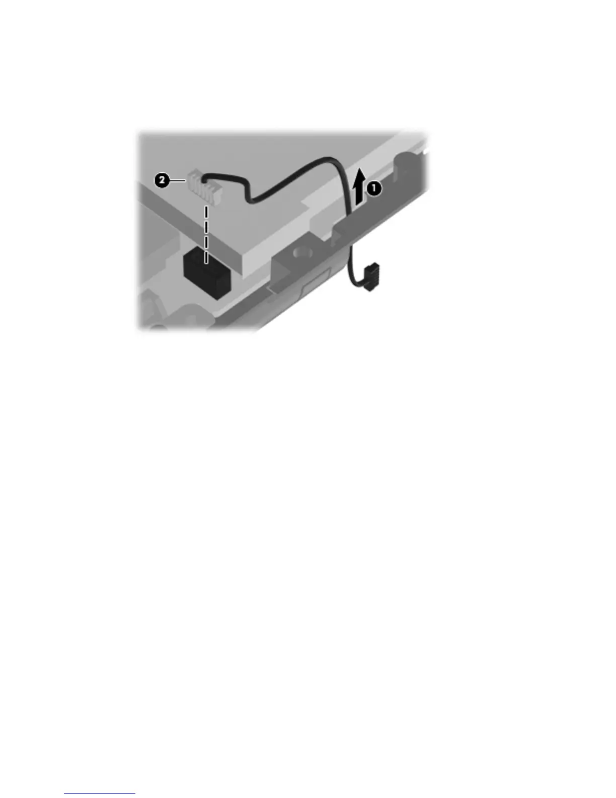 1. Release the Bluetooth module cable (1) from the opening in the base enclosure.