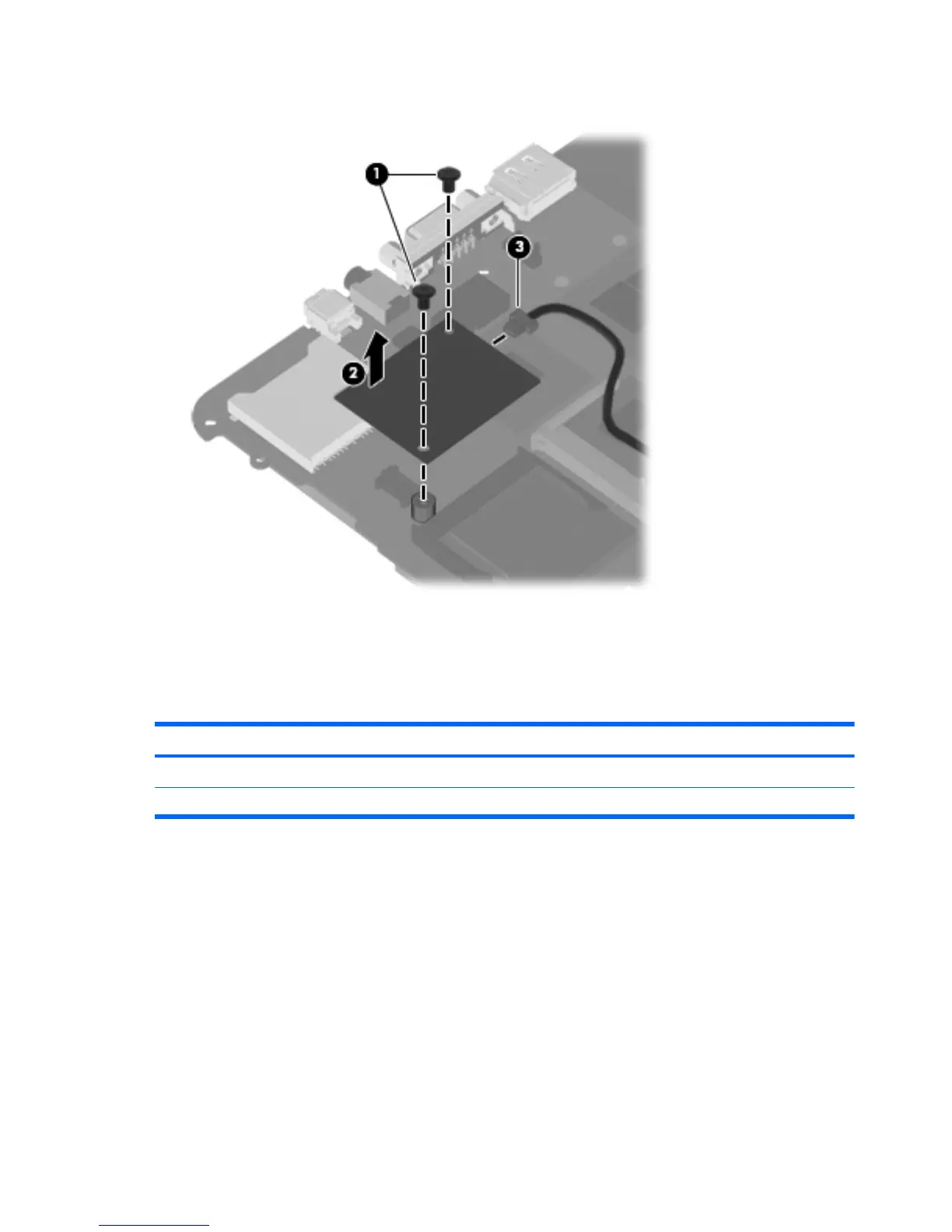 3. Disconnect the modem module cable (3) from the modem module.