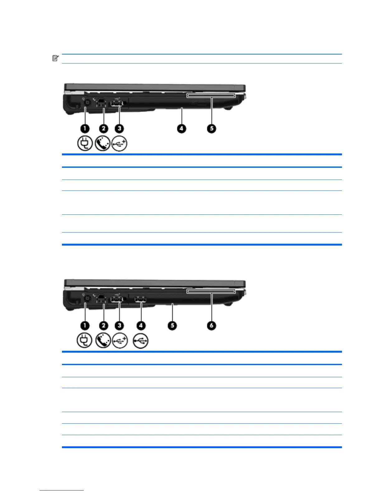 (2) RJ-11 (modem) jack Connects a modem cable (select models only).