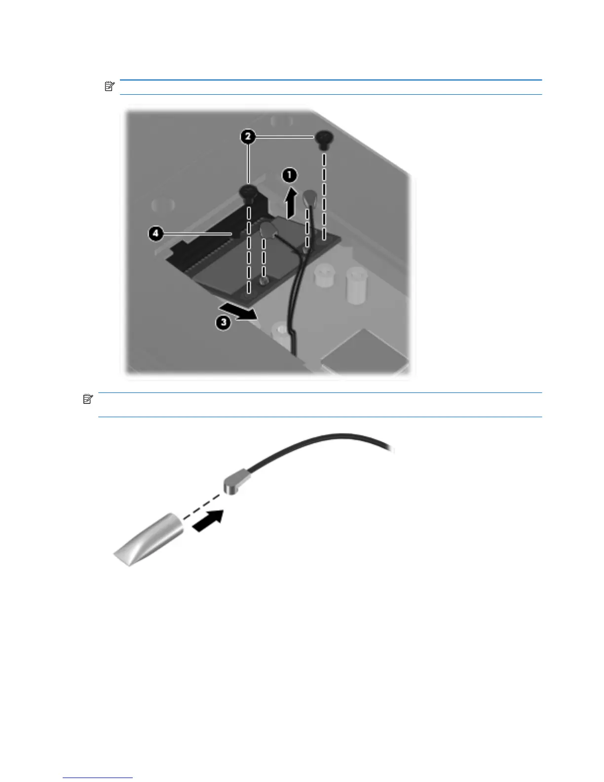 NOTE: If the WLAN antennas are not connected to the terminals on the WLAN module, the
