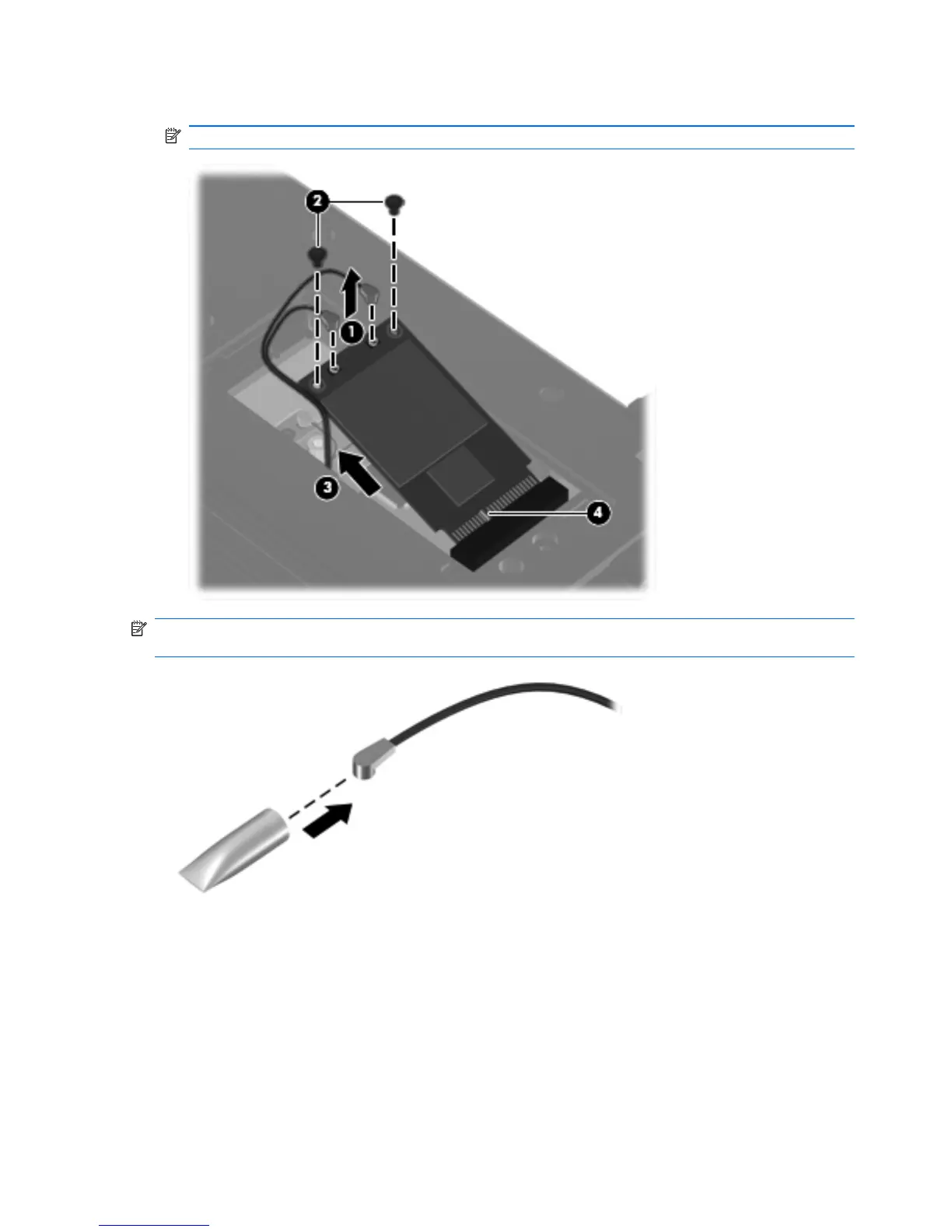 NOTE: If the WWAN antennas are not connected to the terminals on the WWAN module, the