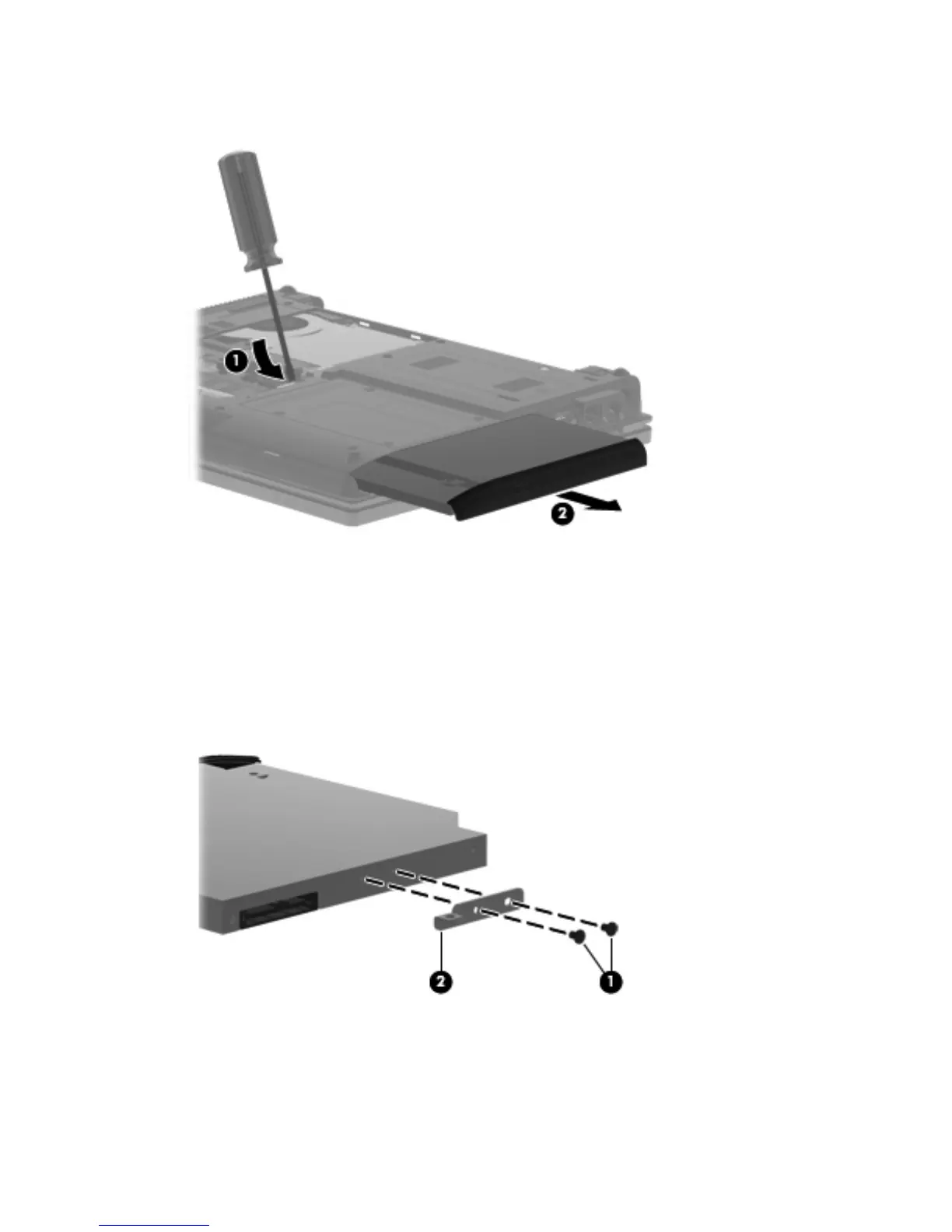 5. If it is necessary to replace the optical drive bracket, position the optical drive with the rear