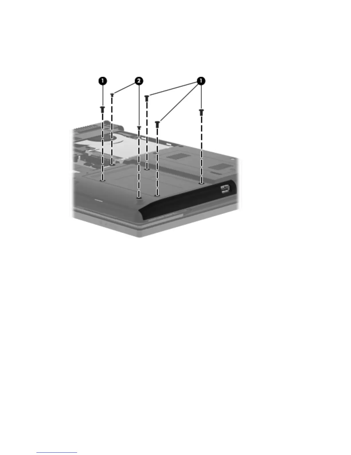 1. Remove the four Phillips PM3.0×3.0 screws (1) and the two Phillips PM2.0×5.0 screws (2) that