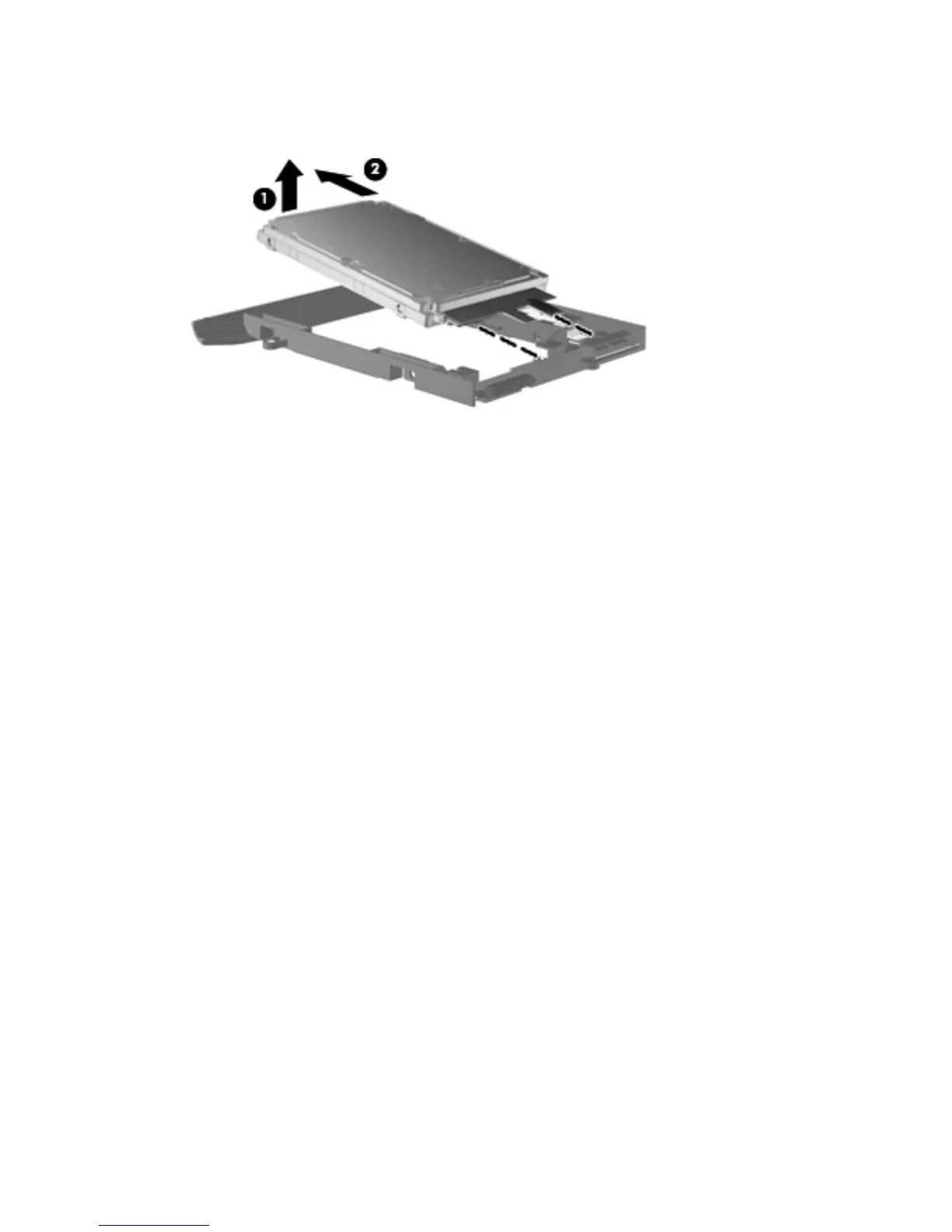 5. Remove the standard-voltage hard drive (2) by sliding it up and away from the hard drive carrier