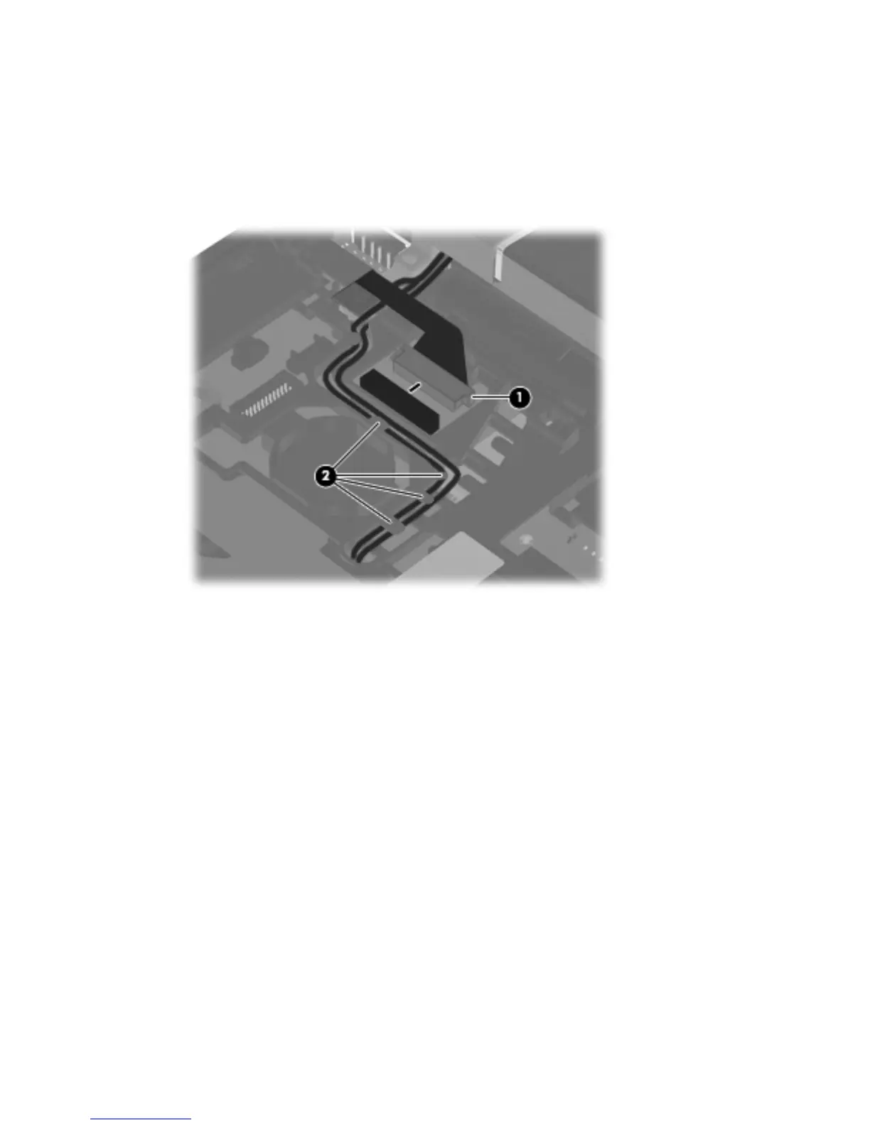 7. Release the wireless antenna cables from the clips (2) built into the top cover.