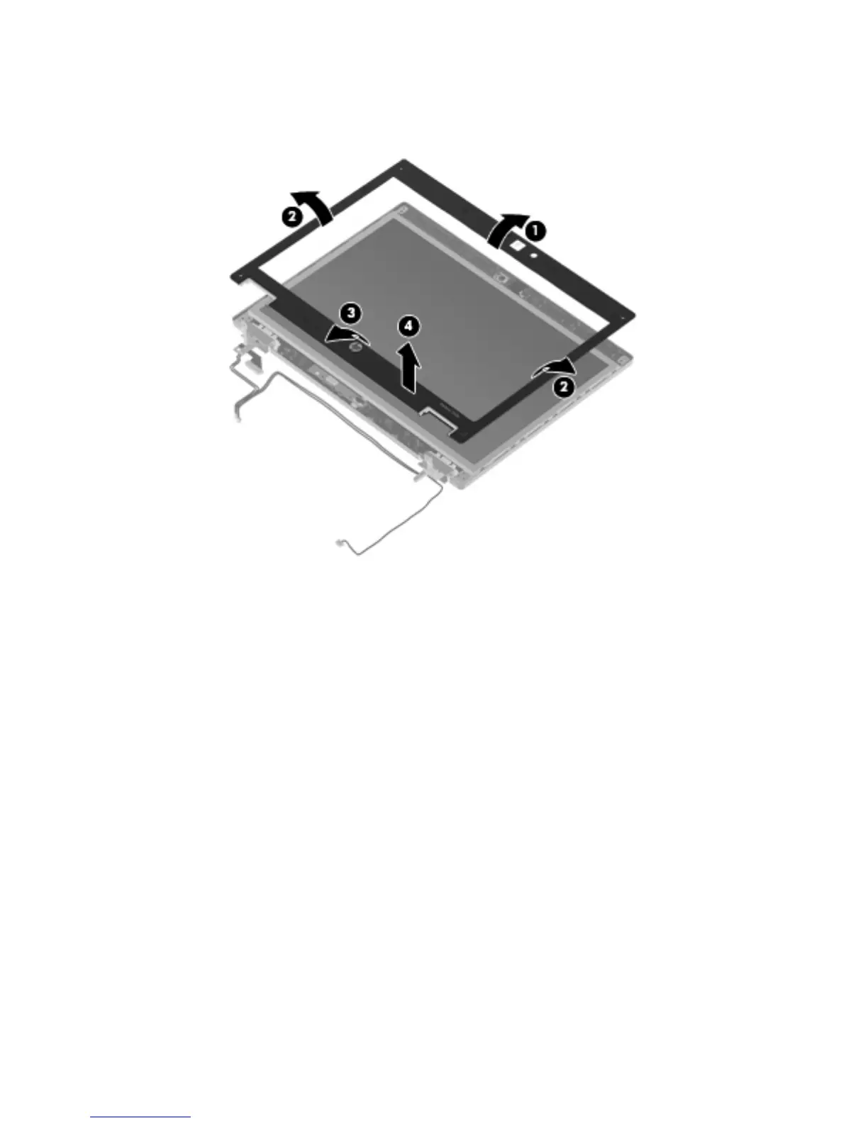 c. Remove the display bezel (4). The display bezel is available using spare part numbers