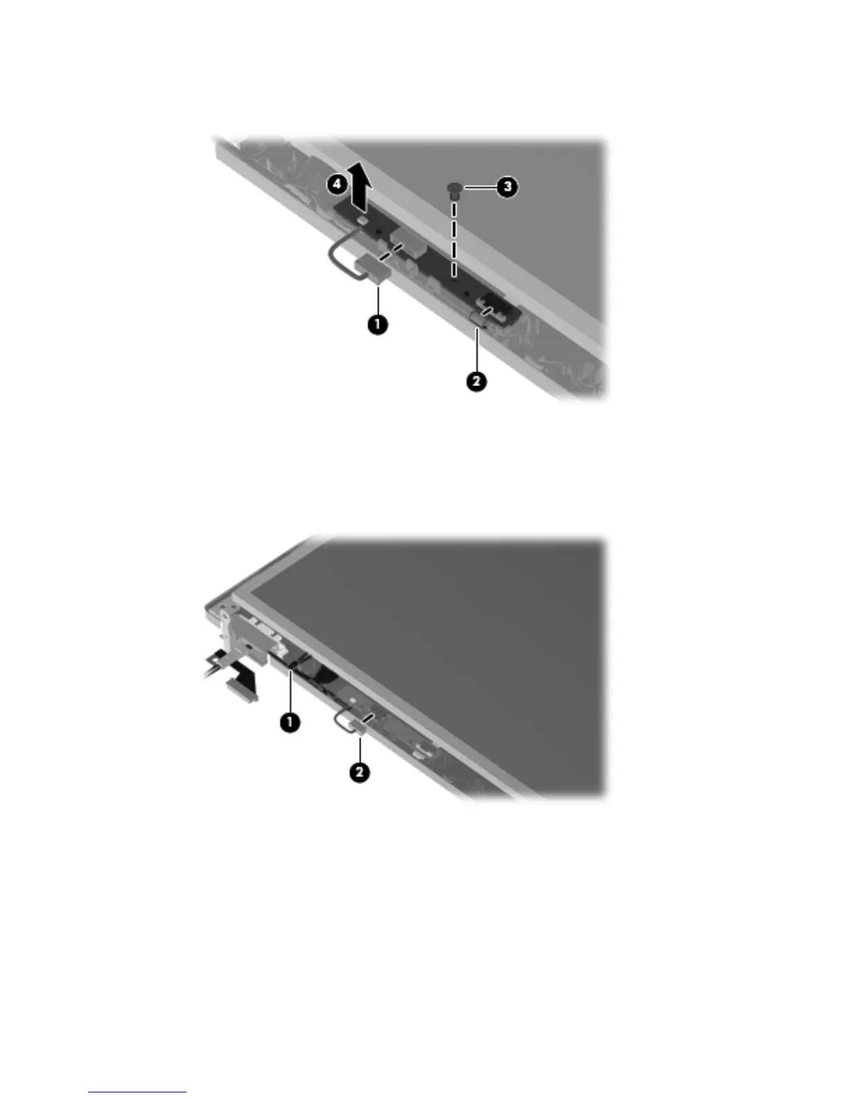 14. If it is necessary to replace the webcam module, display hinges, display panel cable, or display
