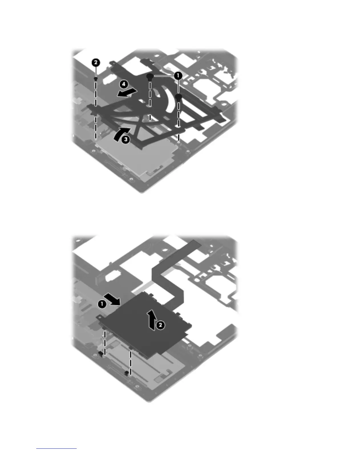 5. Remove the card reader board bracket (4) by sliding it up and forward at an angle.