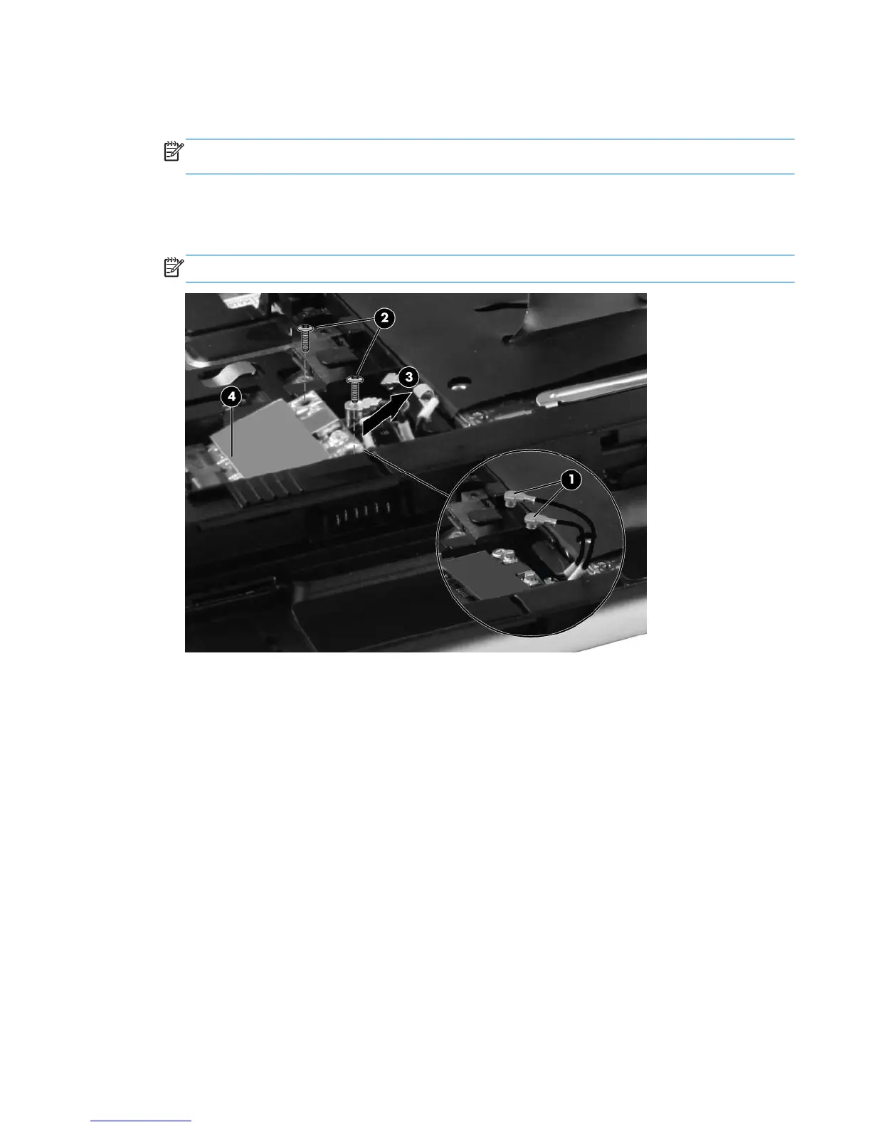 NOTE: WLAN modules are designed with a notch (4) to prevent incorrect insertion.