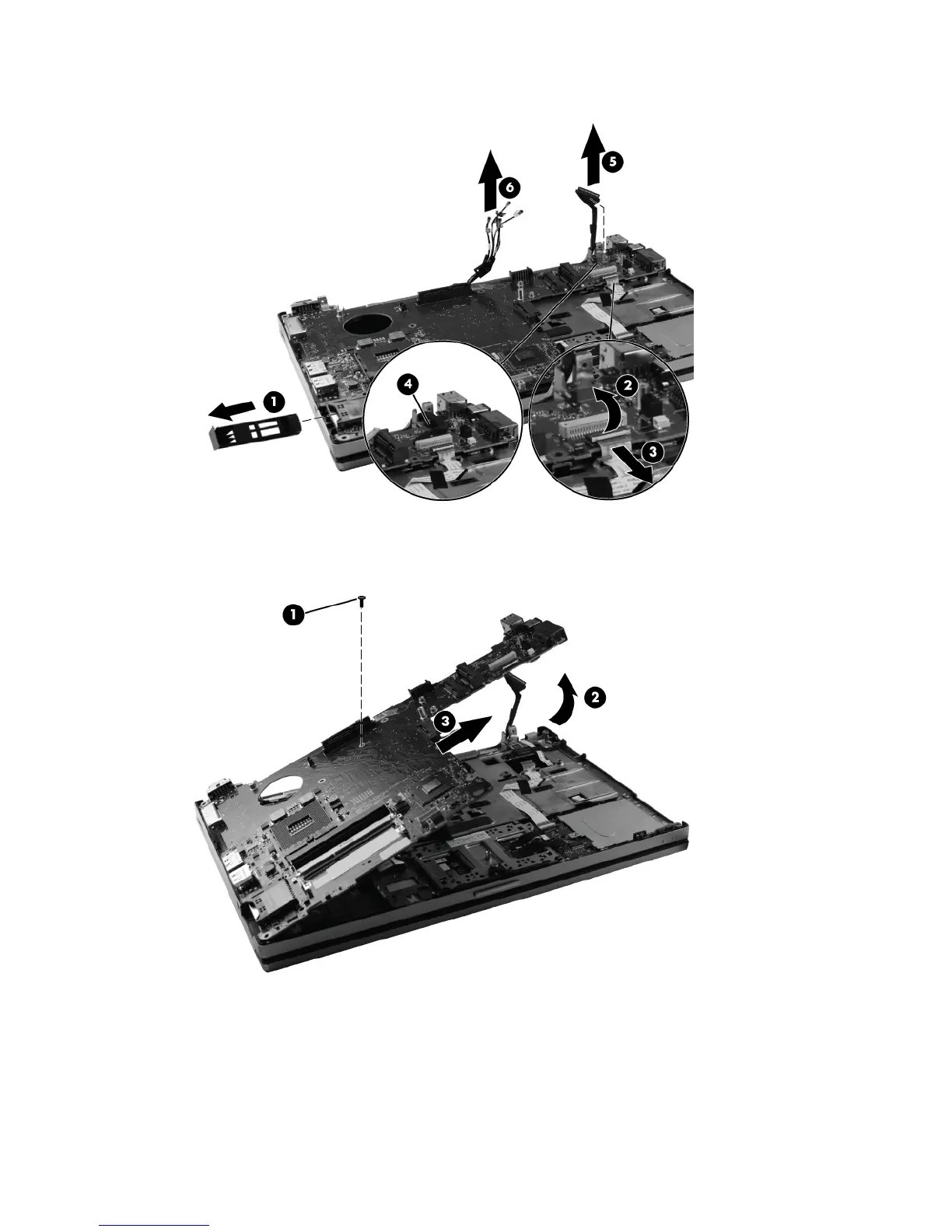 optical drive connector (2) to lift the left side of the system board until it rests at an angle, and