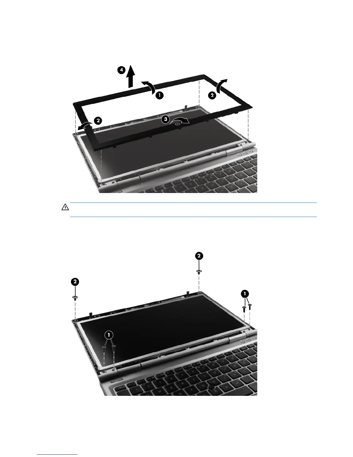 CAUTION: The display enclosure will be unsupported when the screws are removed. To