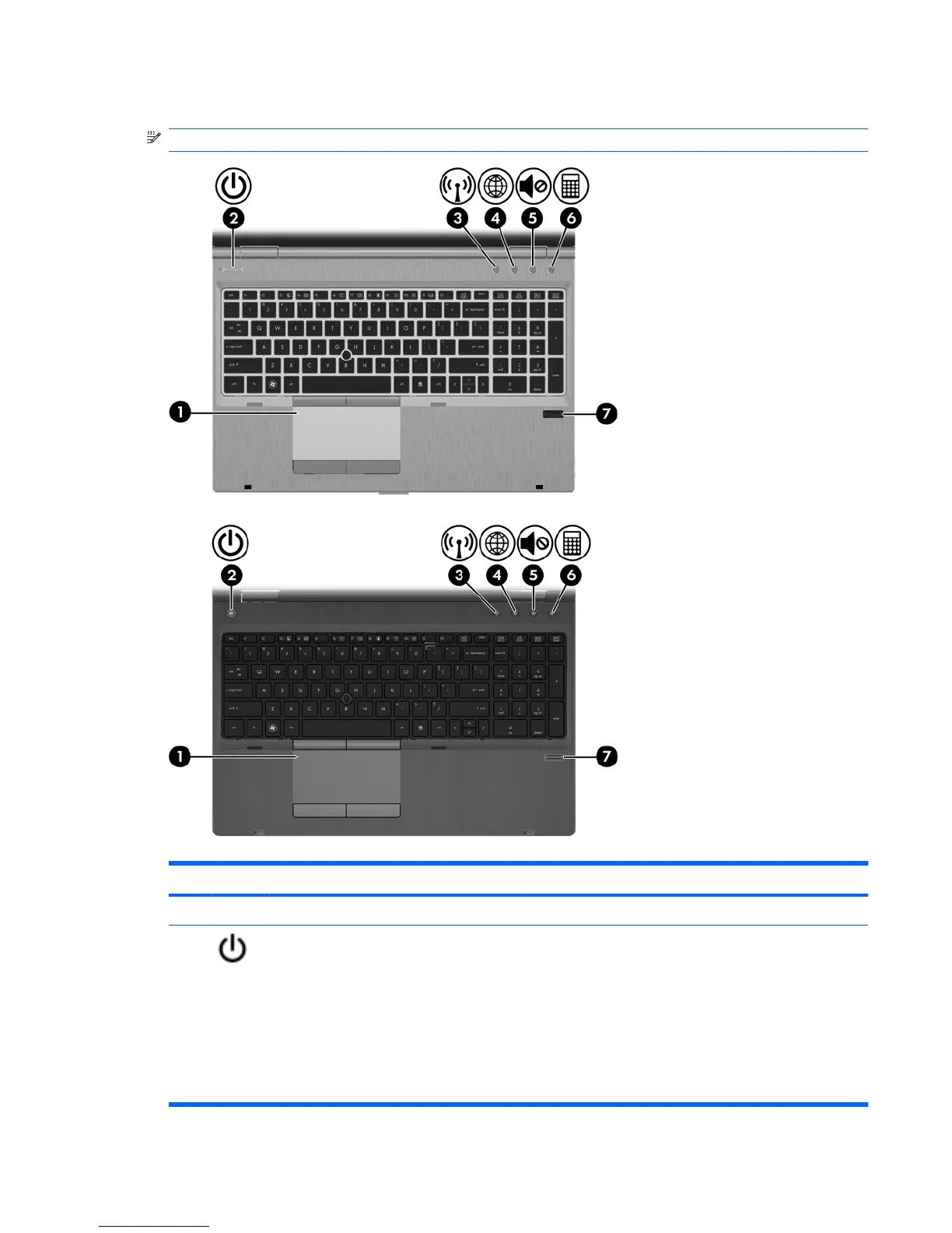 (1) TouchPad on/off button Turns the TouchPad on and off.