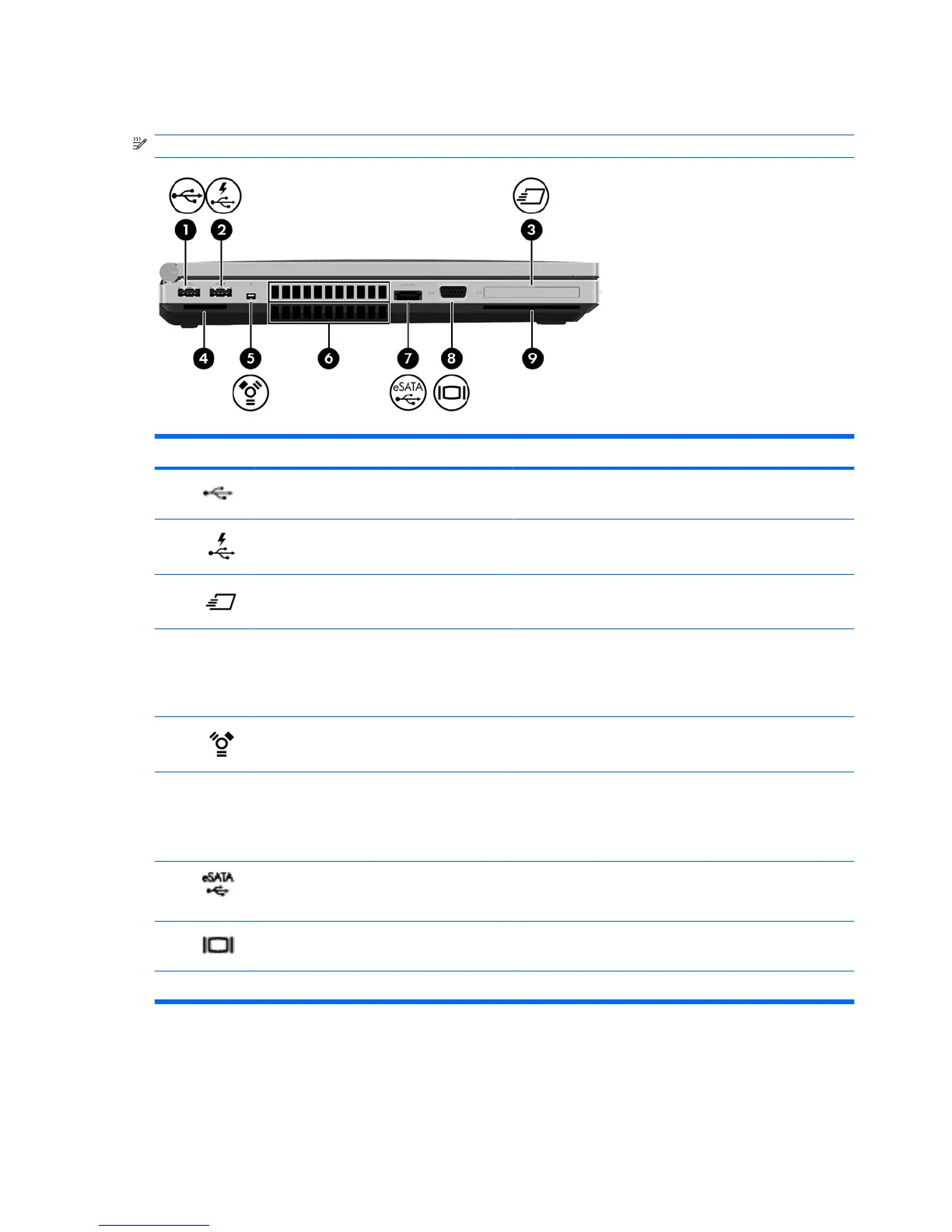 (3) ExpressCard slot (select models only) Supports optional ExpressCards.