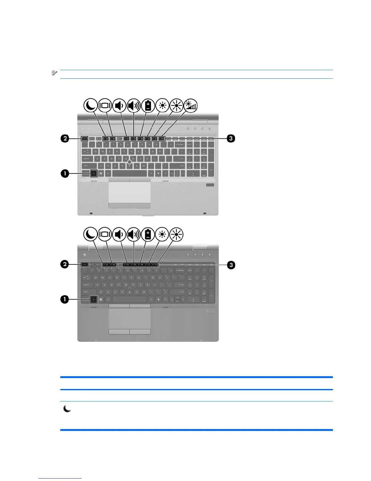 A hotkey is a combination of the fn key (1) and either the esc key (2) or one of the function keys (3).