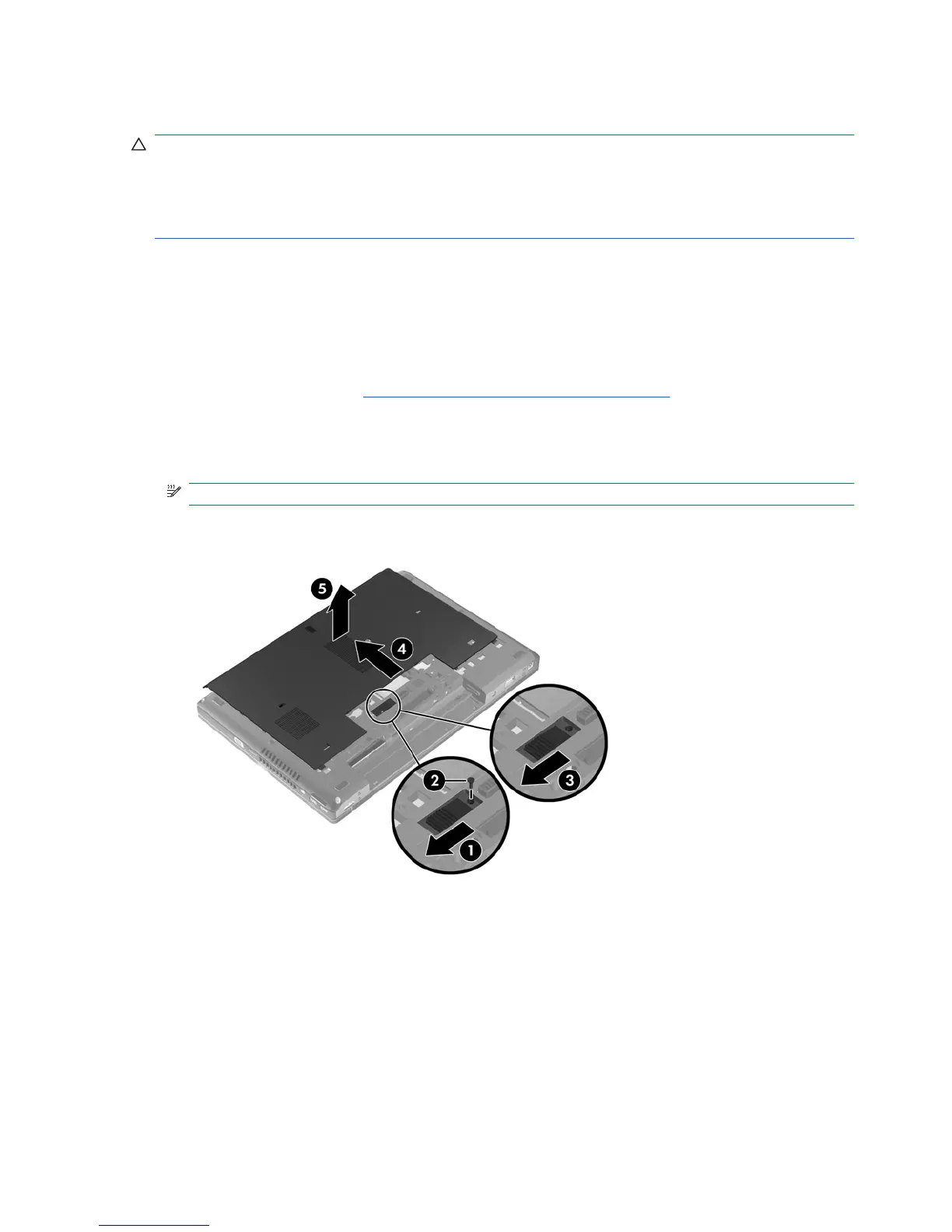 Remove the bottom cover to access the memory module slot, hard drive, regulatory label, and other