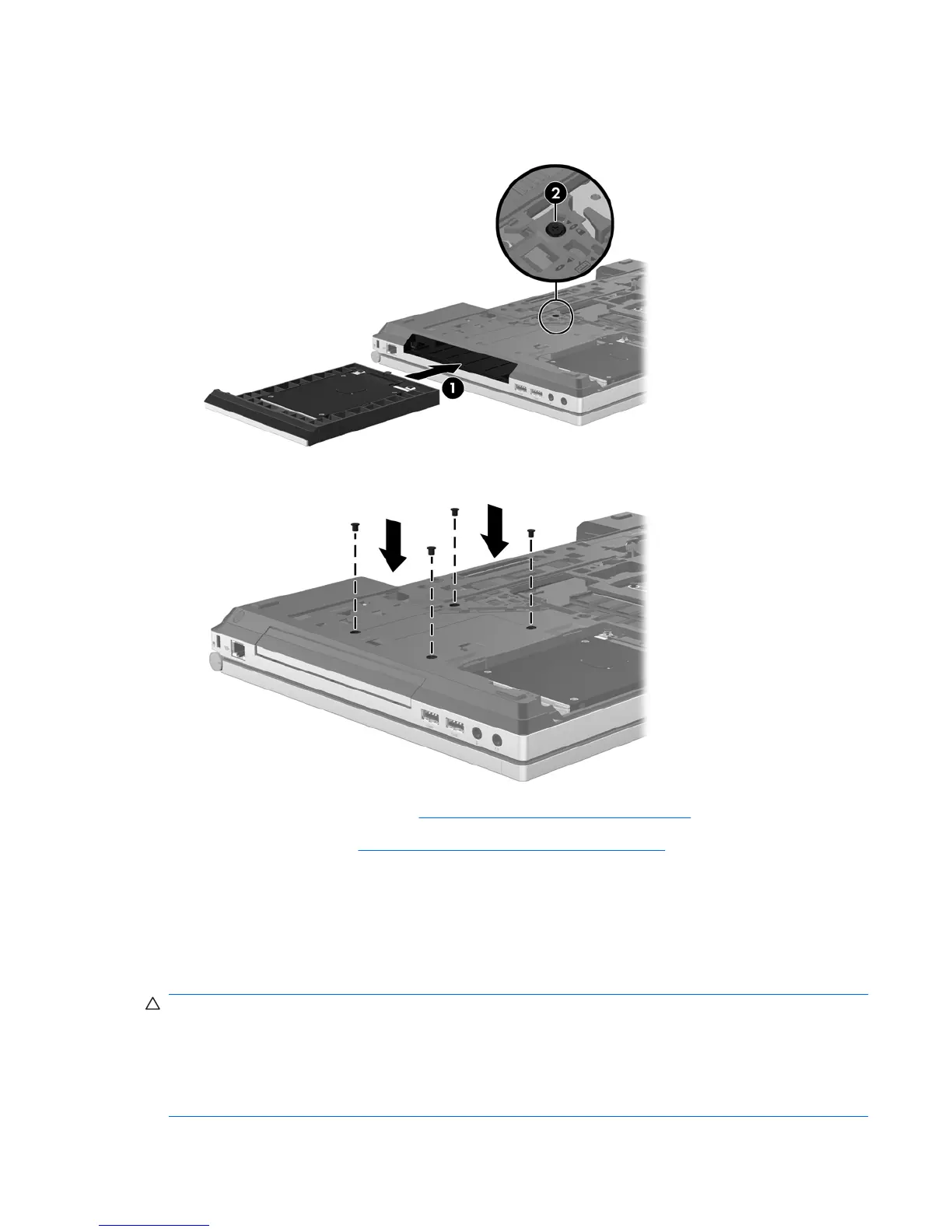 ard drive (1) into the upgrade bay, and then tighten the upgrade bay screw (2).