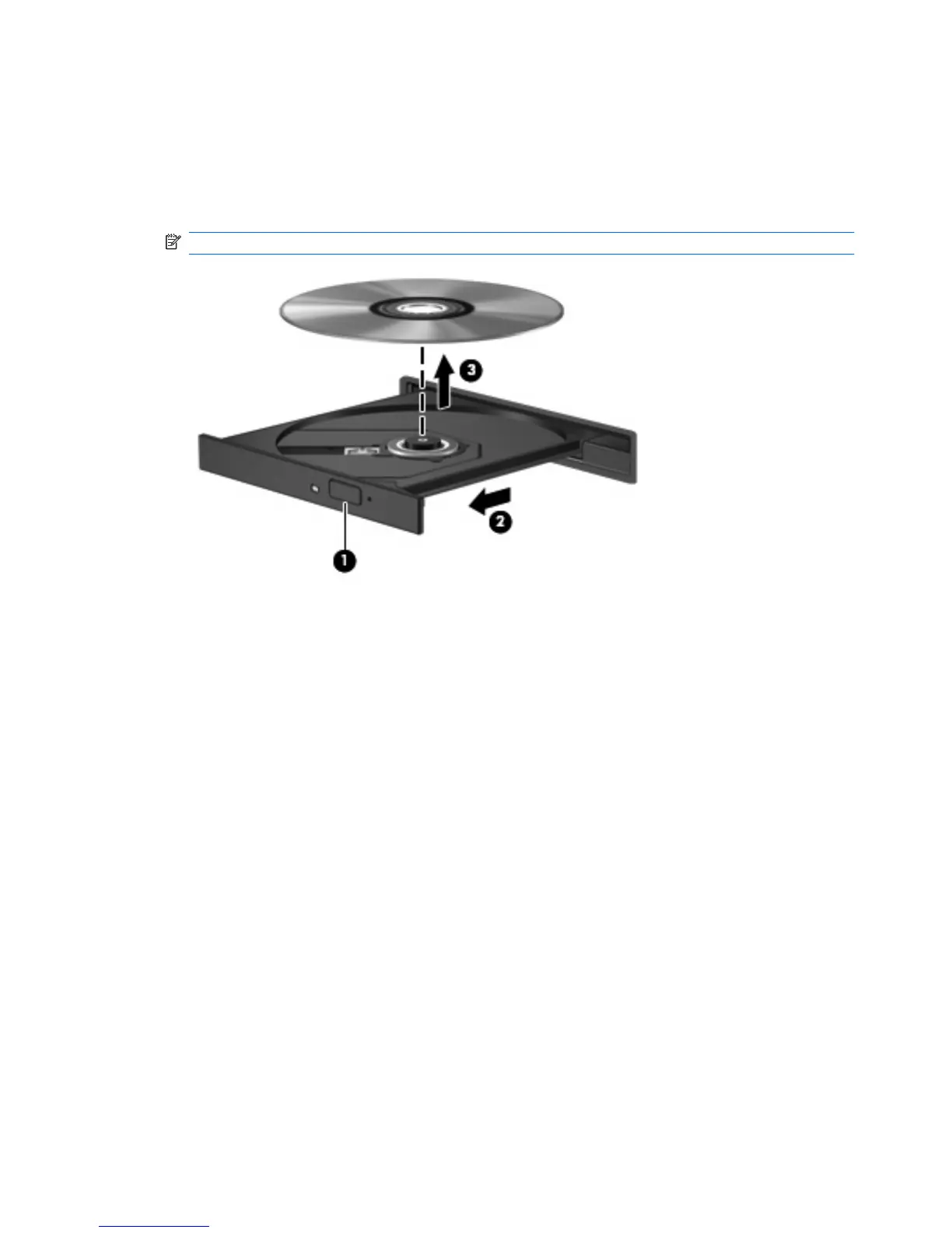 1. Press the release button (1) on the drive bezel to release the disc tray, and then gently pull out the