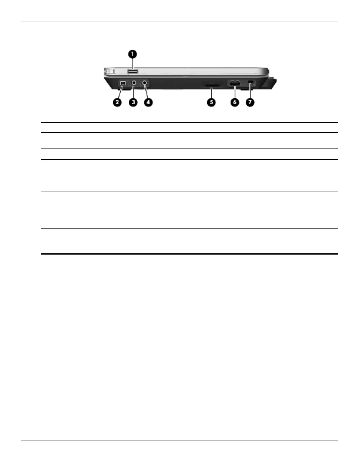 Audio-in (microphone) jack Connects an optional computer headset microphone, stereo array