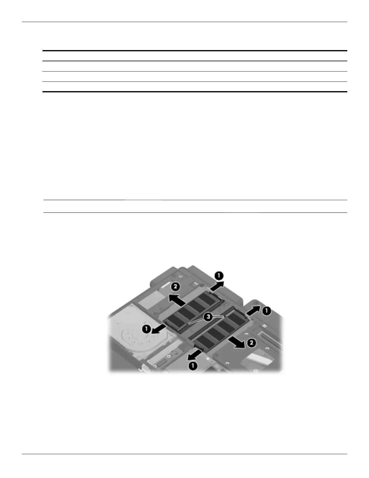 2. Remove the memory module 2 by pulling the module away from the slot at an angle.