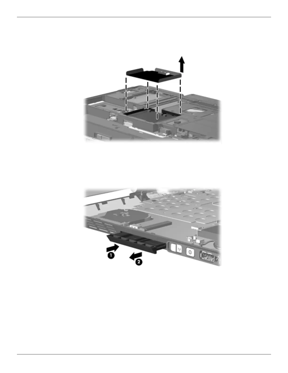 2. Remove the wireless module compartment shield from the base enclosure. The wireless module compartment