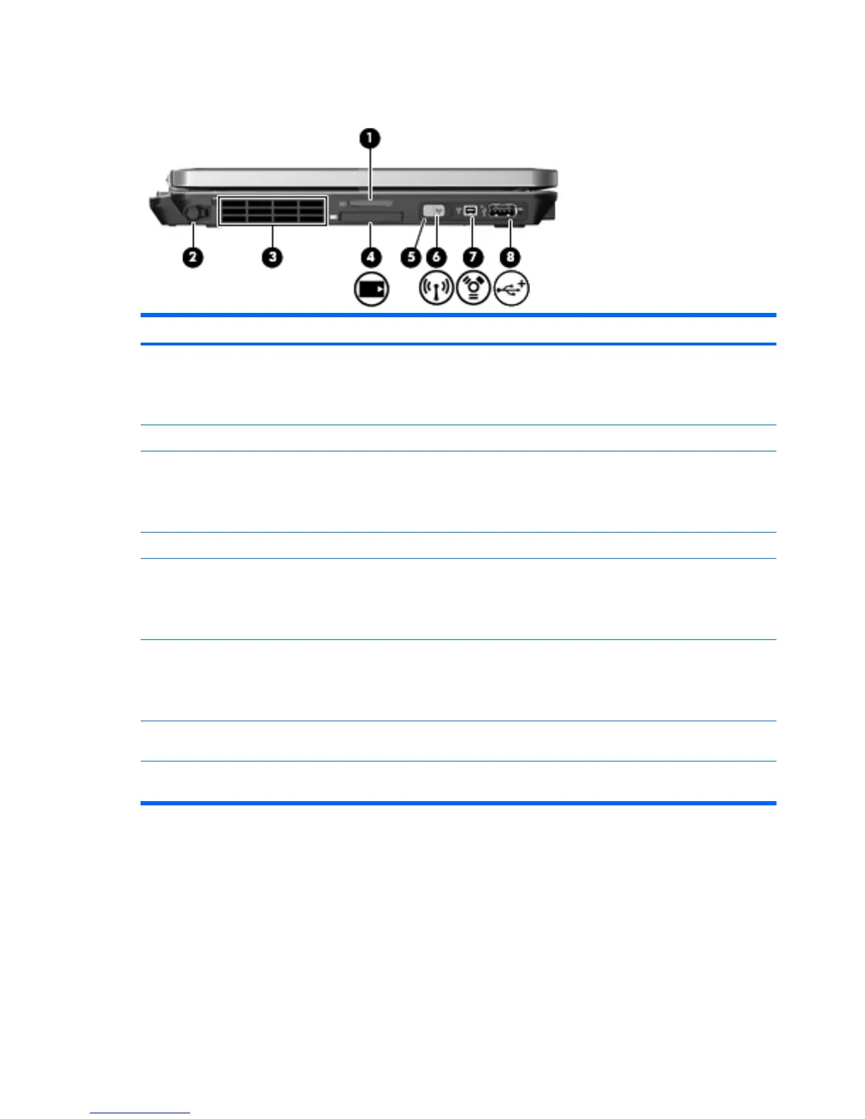 (4) ExpressCard slot (select models only) Supports optional ExpressCards.