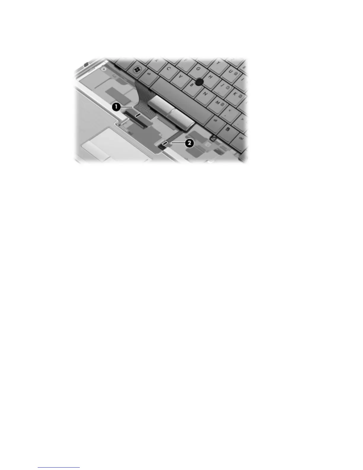 7. Release the ZIF connector to which the pointing stick cable (2) is attached, and then disconnect