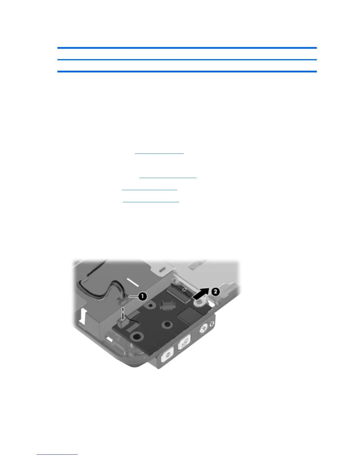 2. Disconnect the speaker cable (1) from the audio connector board.