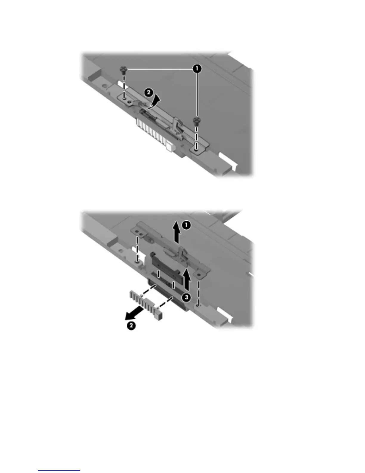 4. Lift the bracket from the computer (1), pull the front latch away from the front of the computer (2),