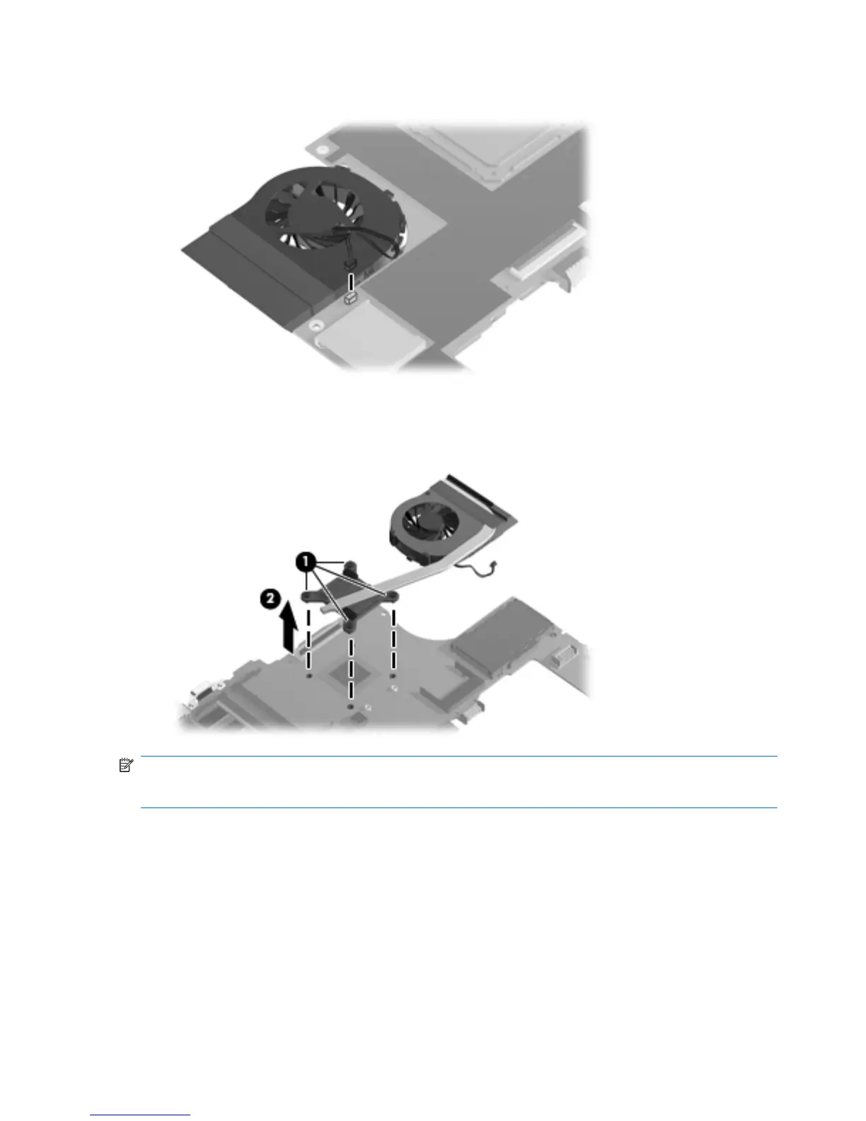 NOTE: The thermal material must be thoroughly cleaned from the surfaces of the heat sink (1) and