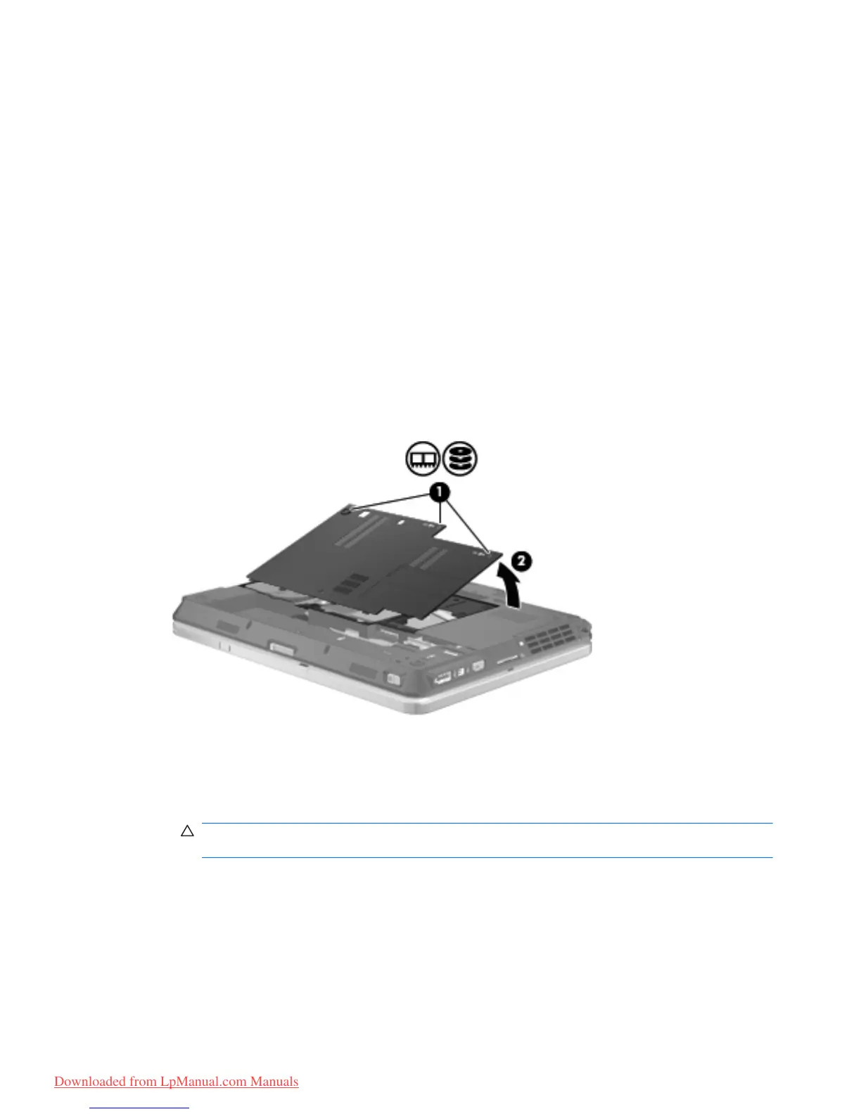 7. Loosen the 3 hard drive compartment cover screws (1).