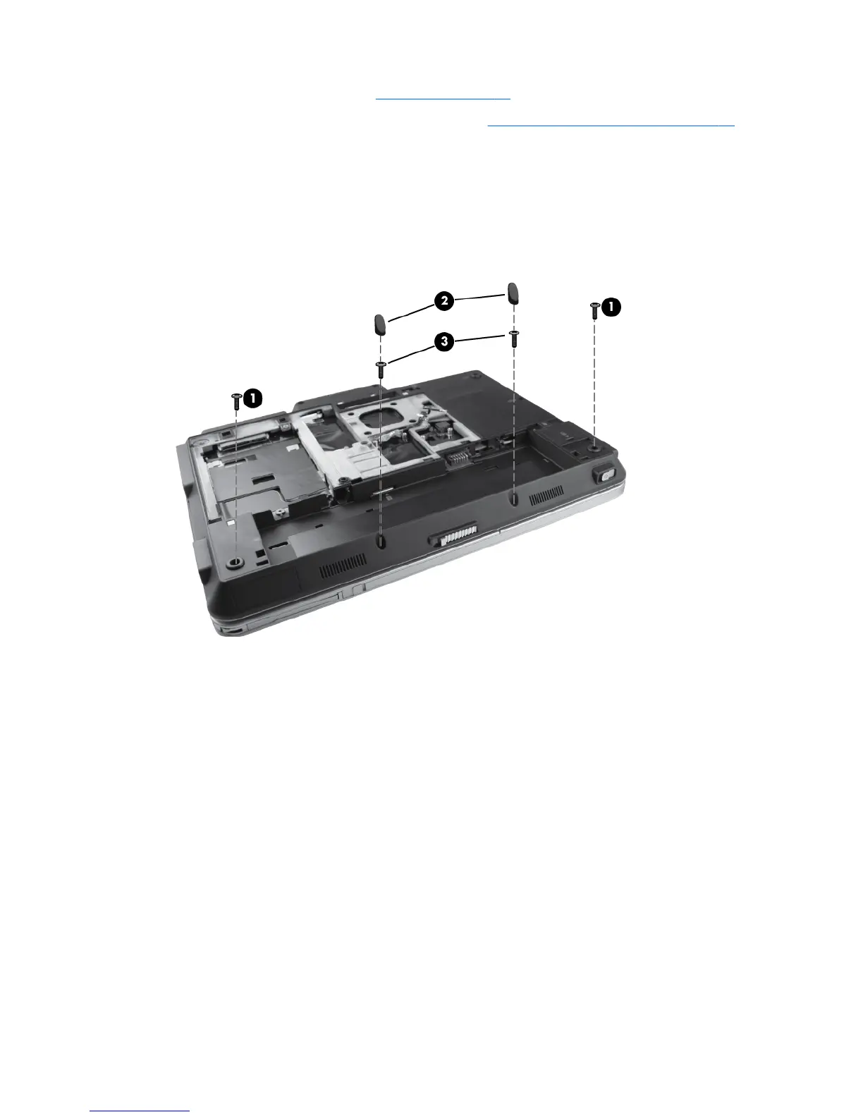 2. Remove the two Torx 8M2.0×7.0 screws (1) located in the bottom feet. You do not need to