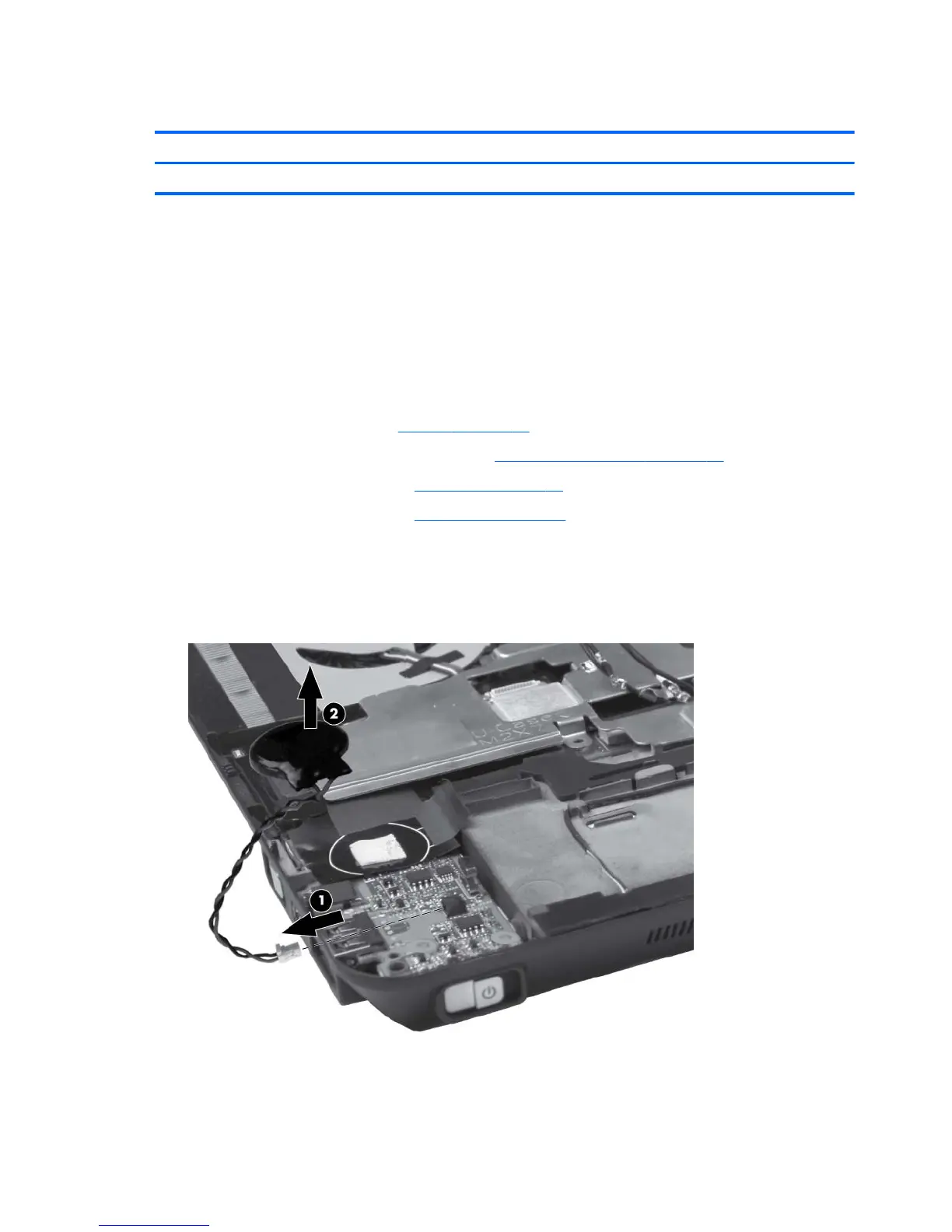 1. Disconnect the RTC battery cable (1) from the system board.