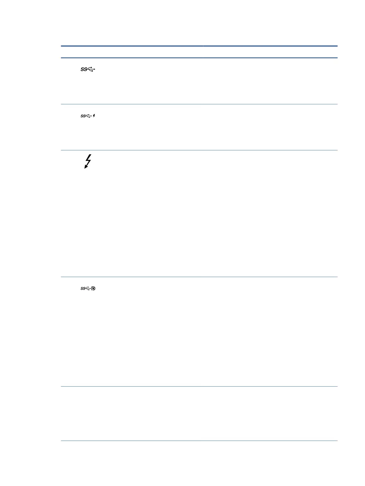 (4) USB SuperSpeed 5 Gbps port Connects a USB device, provides high-speed data transfer,