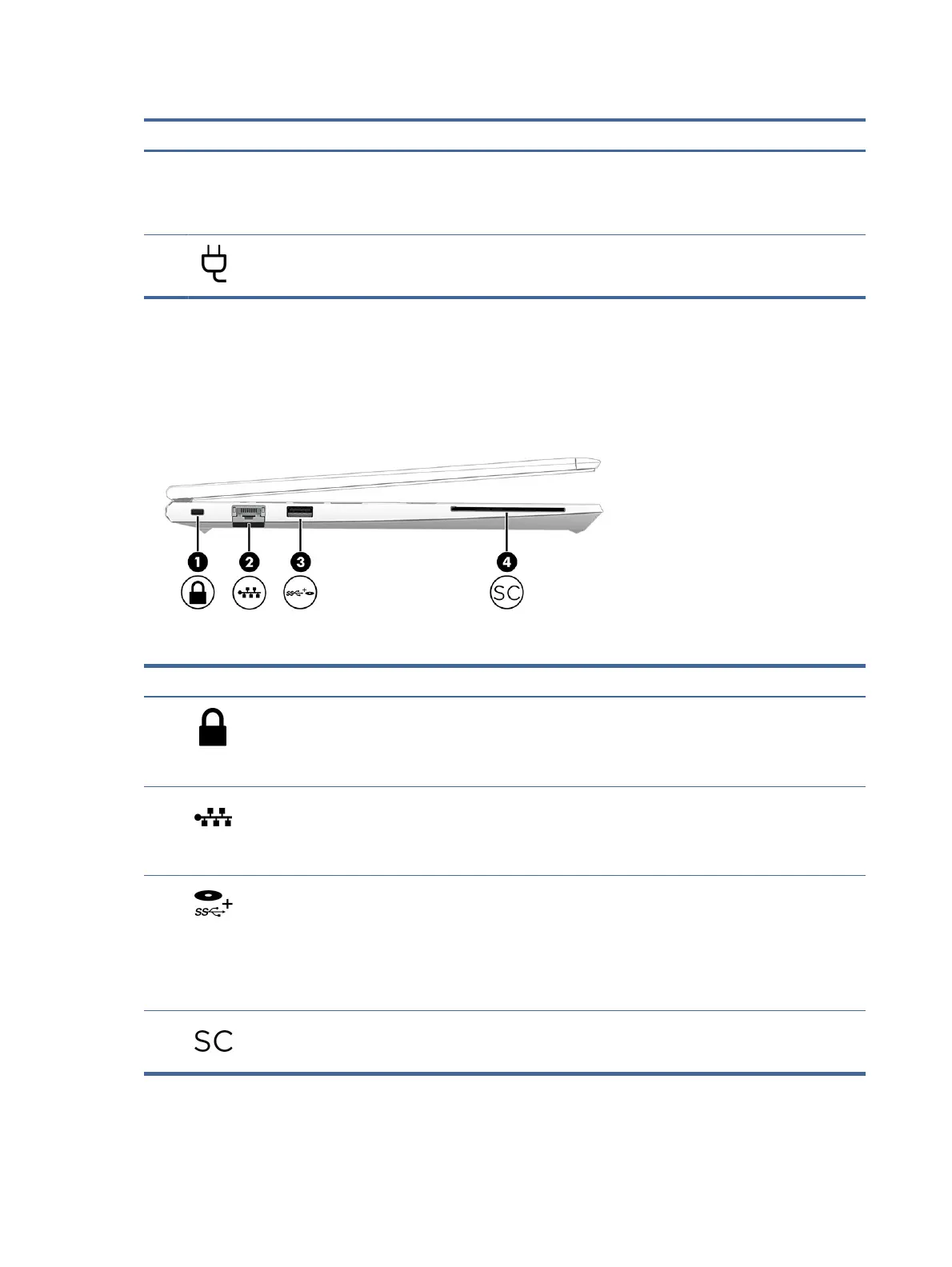 (3) USB SuperSpeed 5 Gbps powered port Connects and supplies power to a USB device, provides high