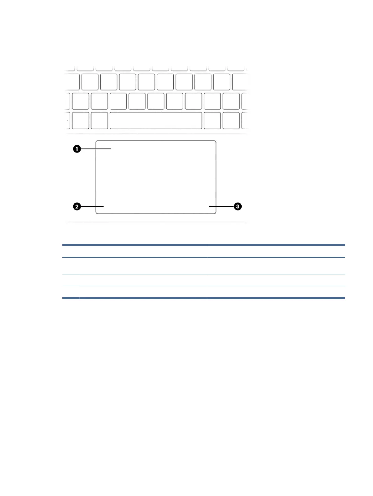 (1) Touchpad zone Reads your nger gestures to move the pointer or activate items