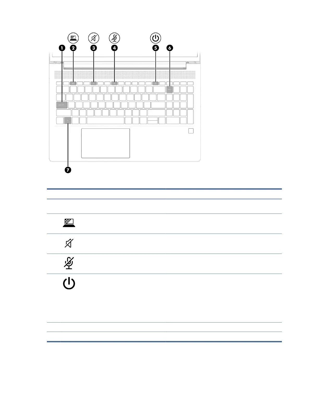 (7) Fn lock light On: The fn key is locked.