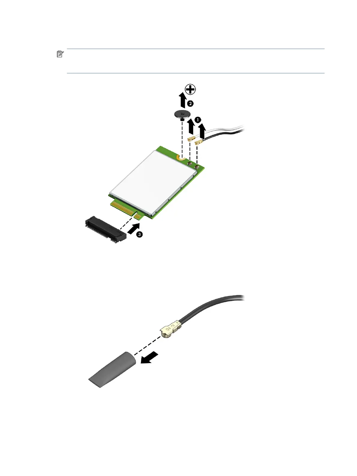 4. If the WLAN antenna is not connected to the terminal on the WLAN module, install a protective sleeve on