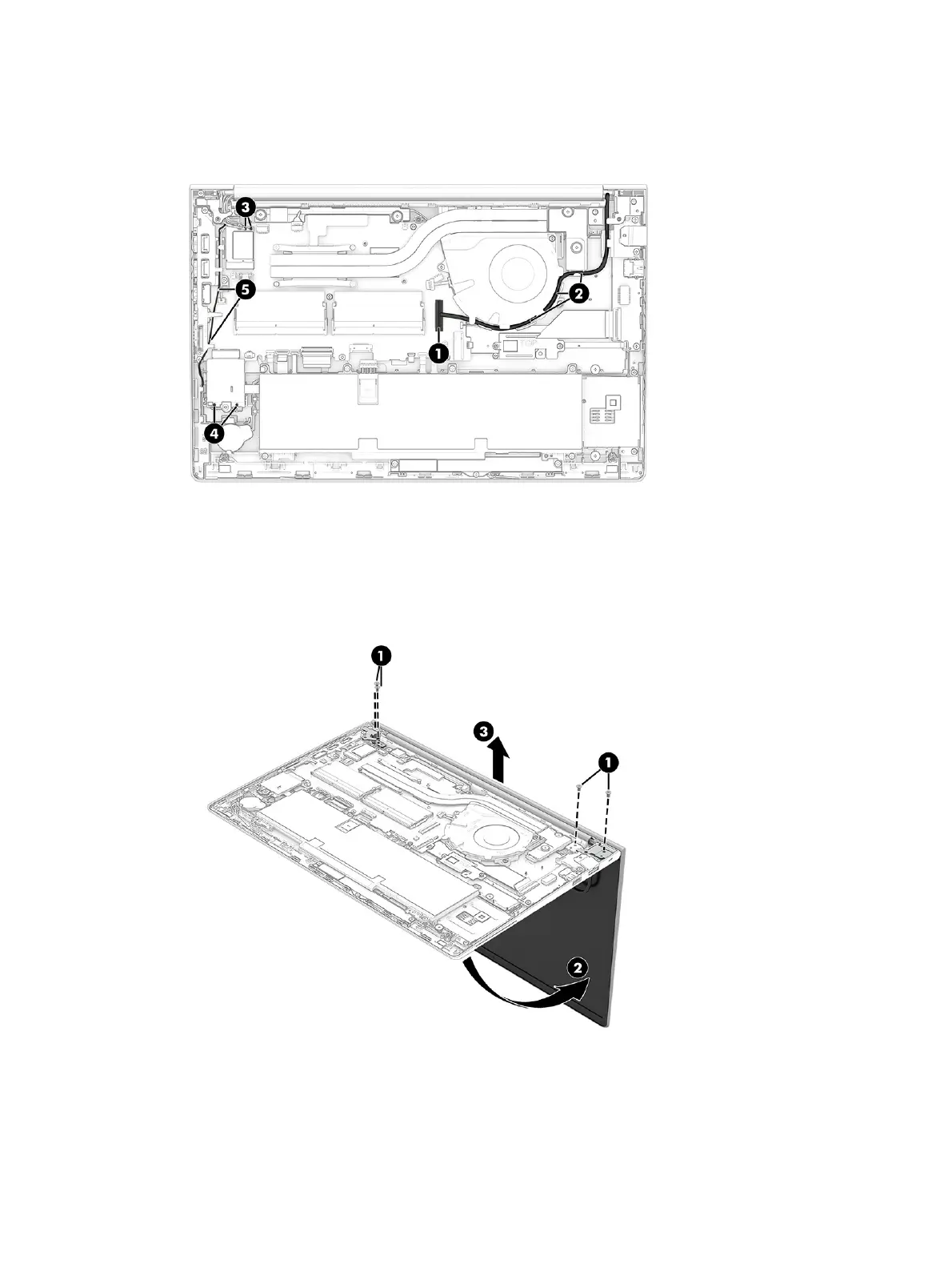 4. Remove the four Phillips M2.5 × 4.0 screws (1) that secure the display assembly to the computer.
