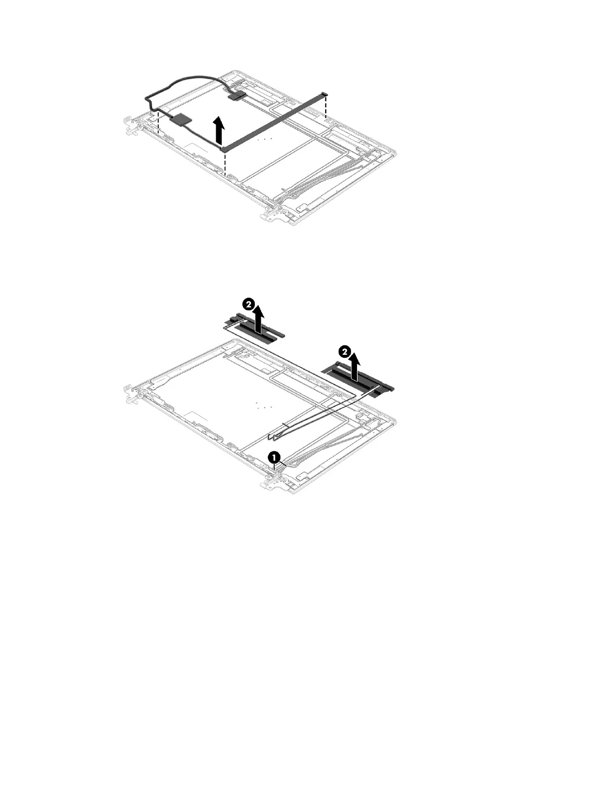 display rear cover (2), and then peel the antennas o the cover (3). The WWAN antennas and cables