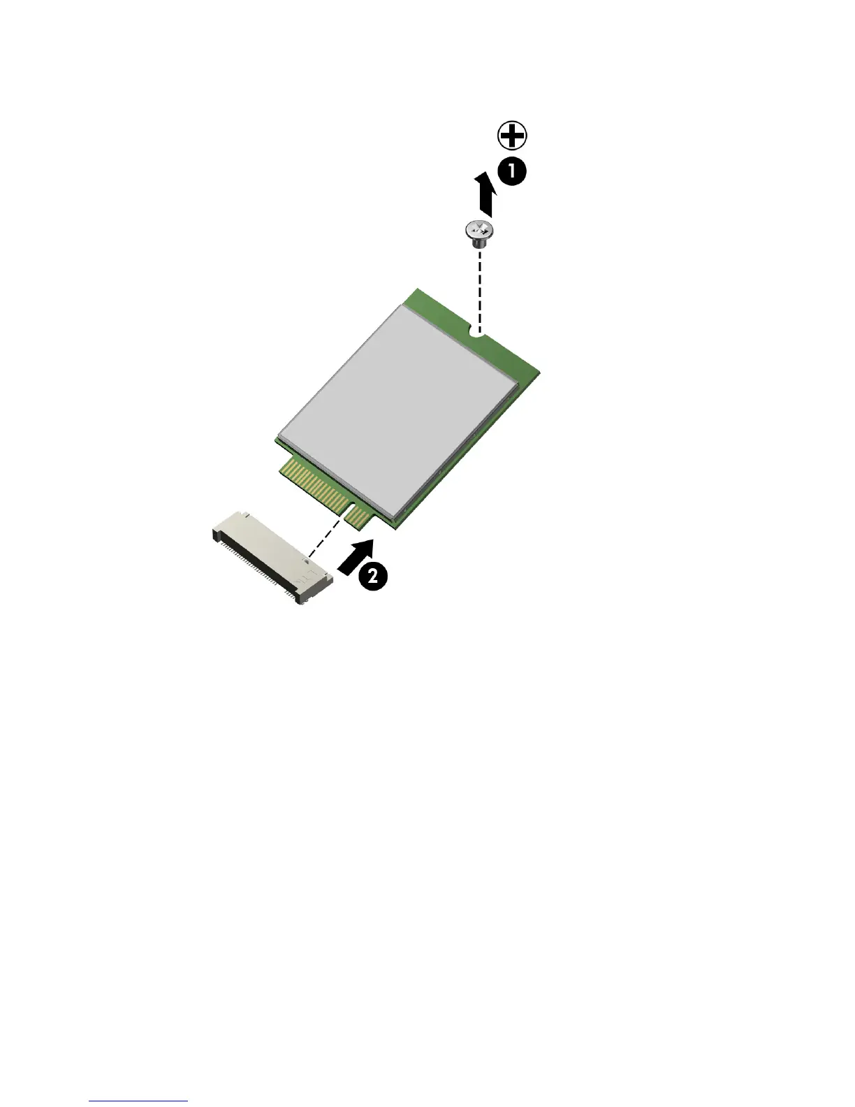 2. Remove the solid-state drive (2) by pulling the drive away from the slot at an angle.